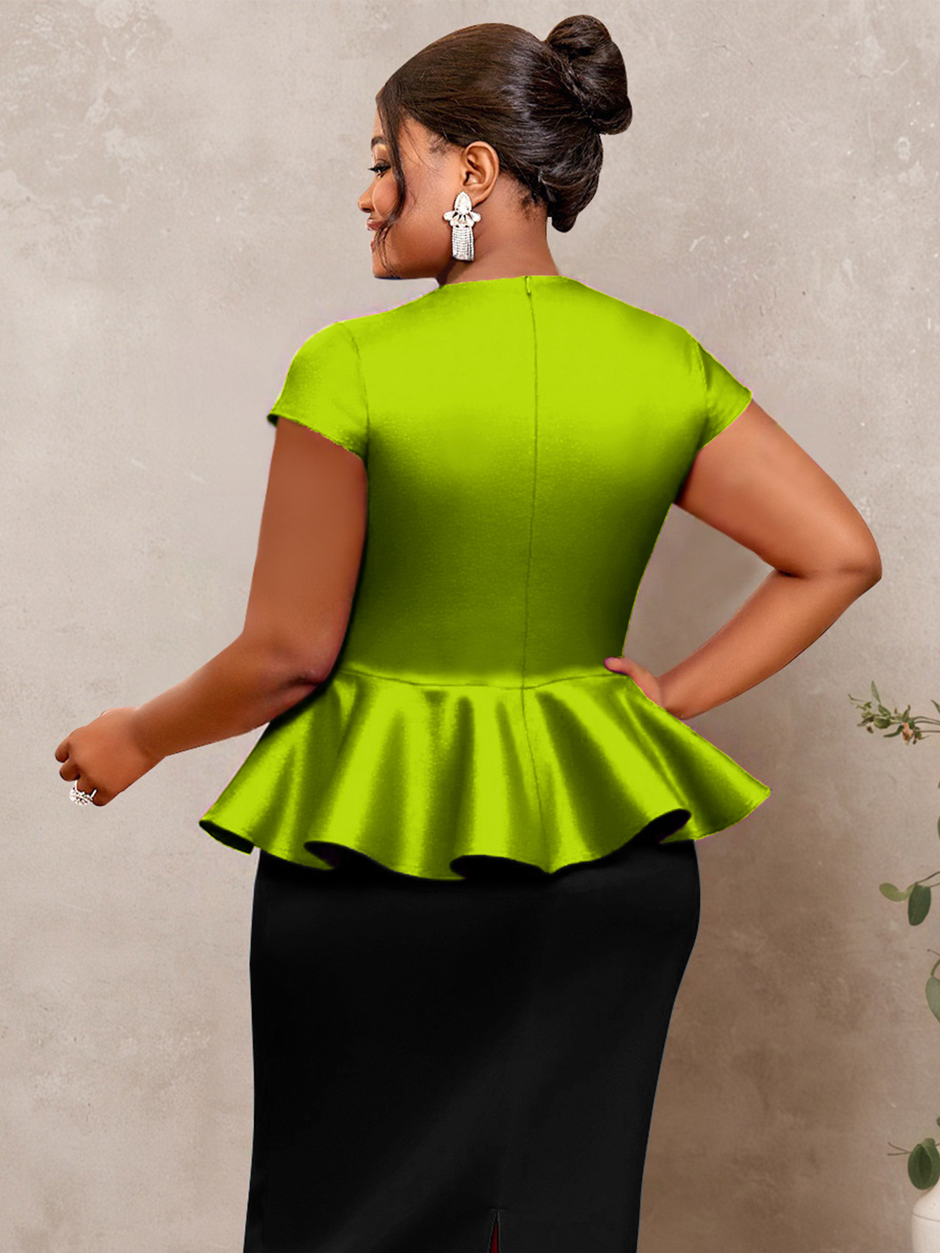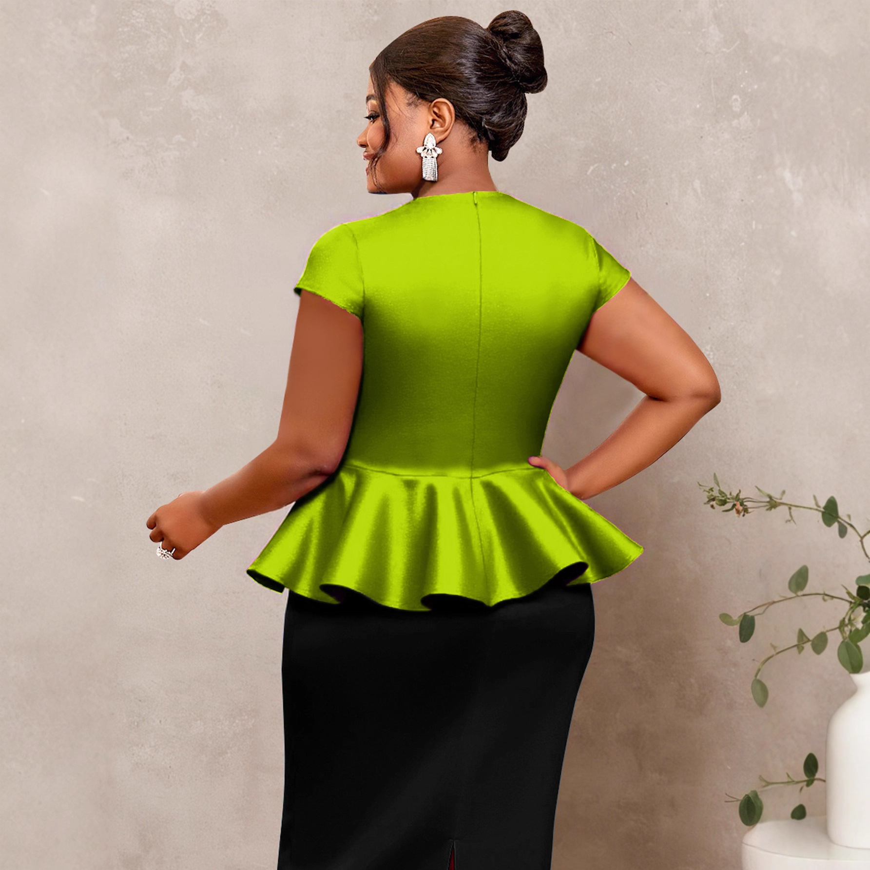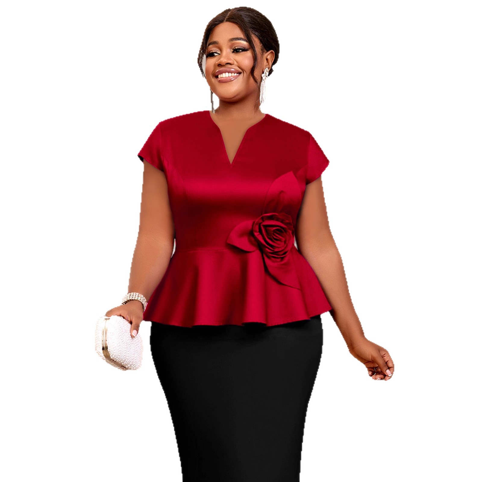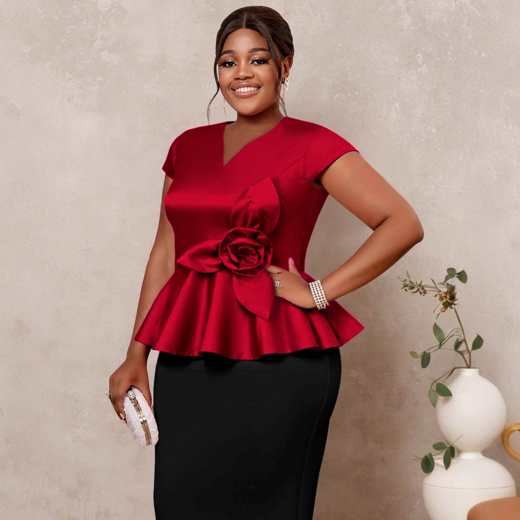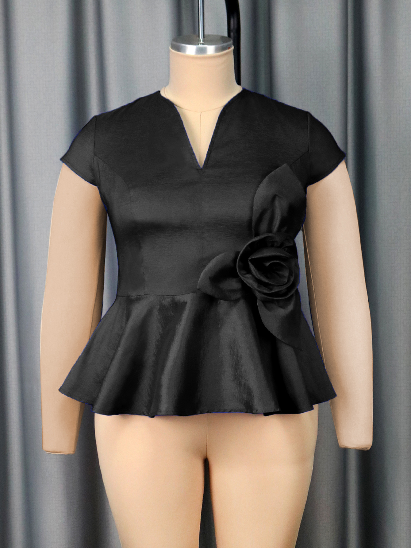 Plus-size Womens Clothing V-neck Ruffled Top 3D Design