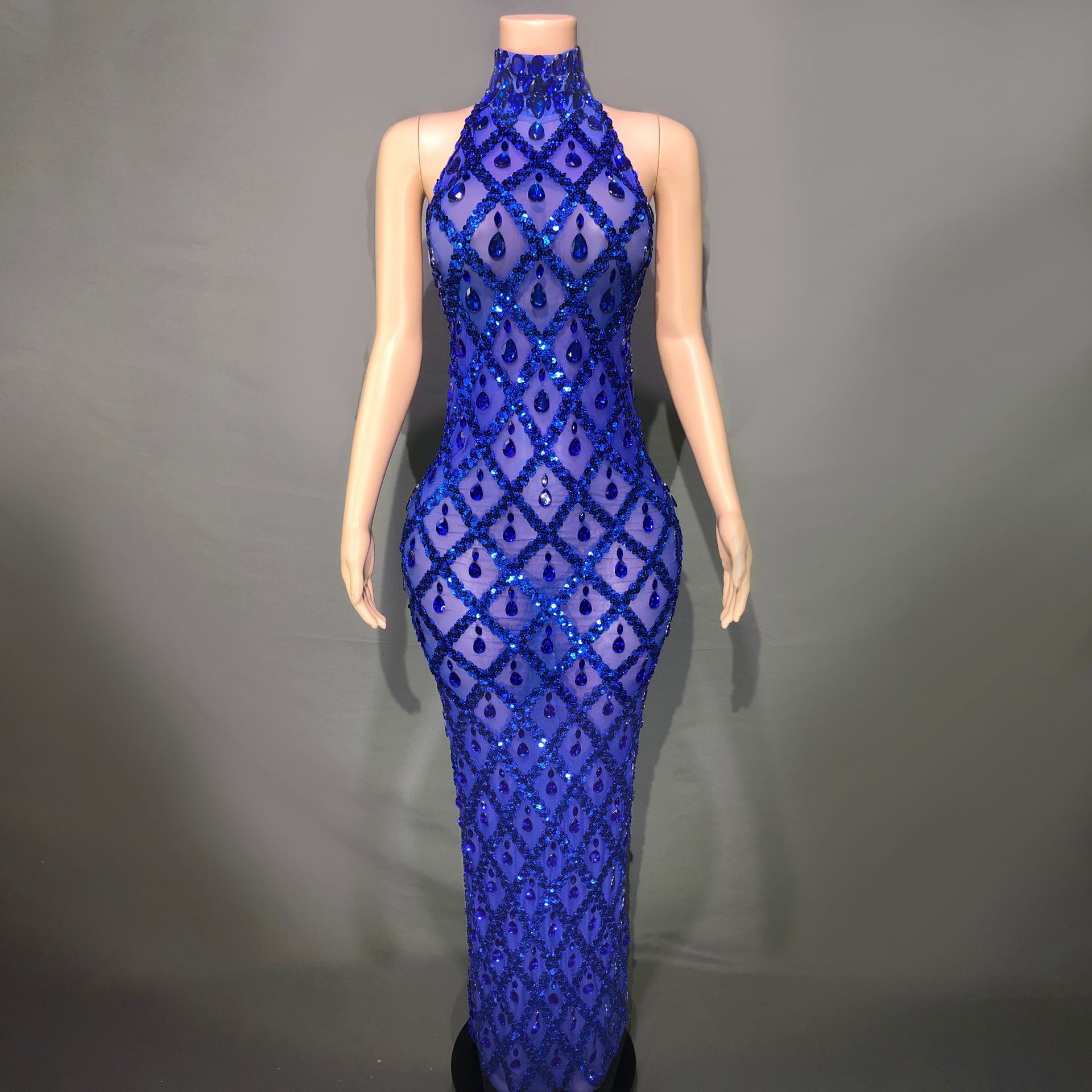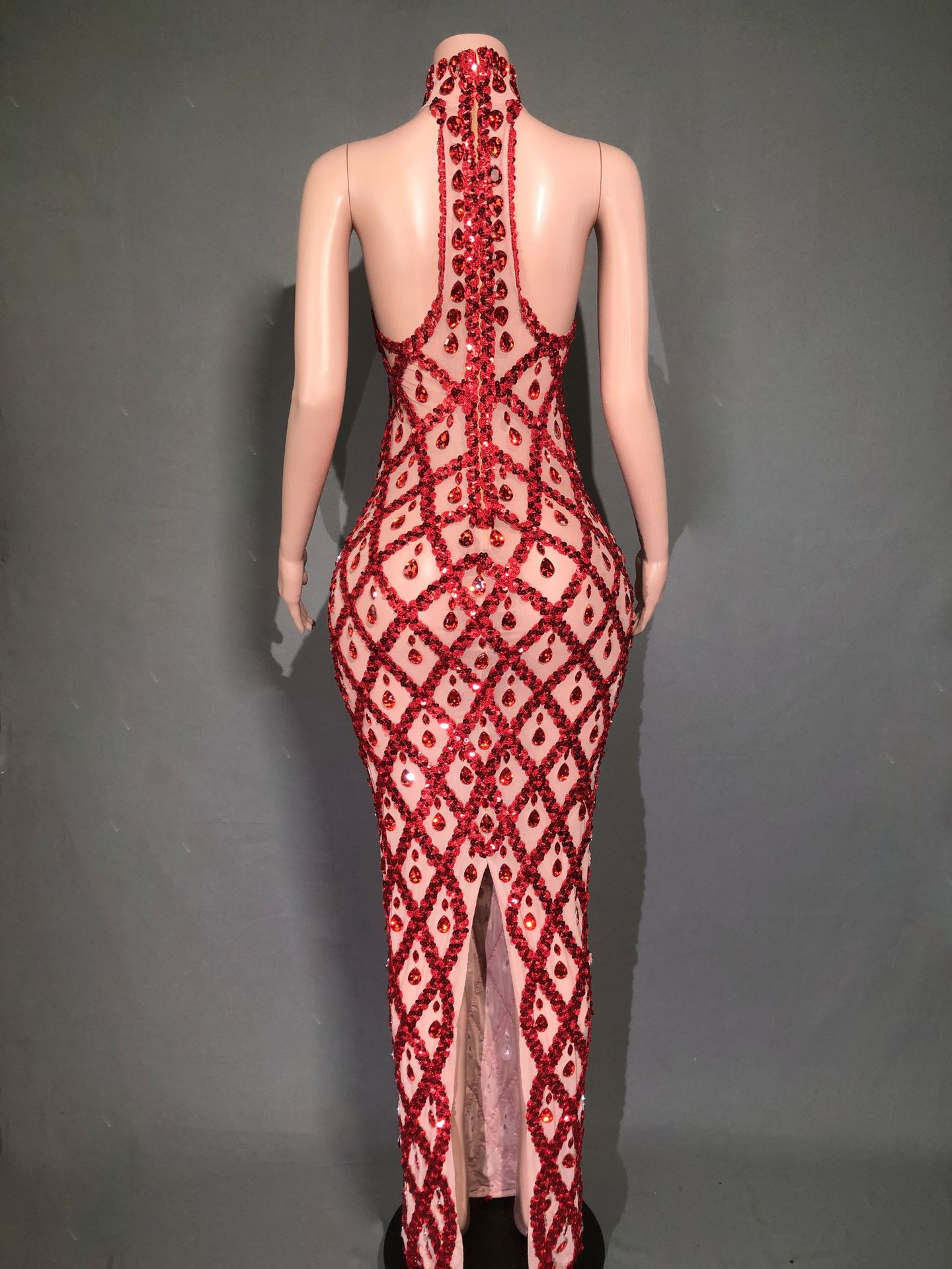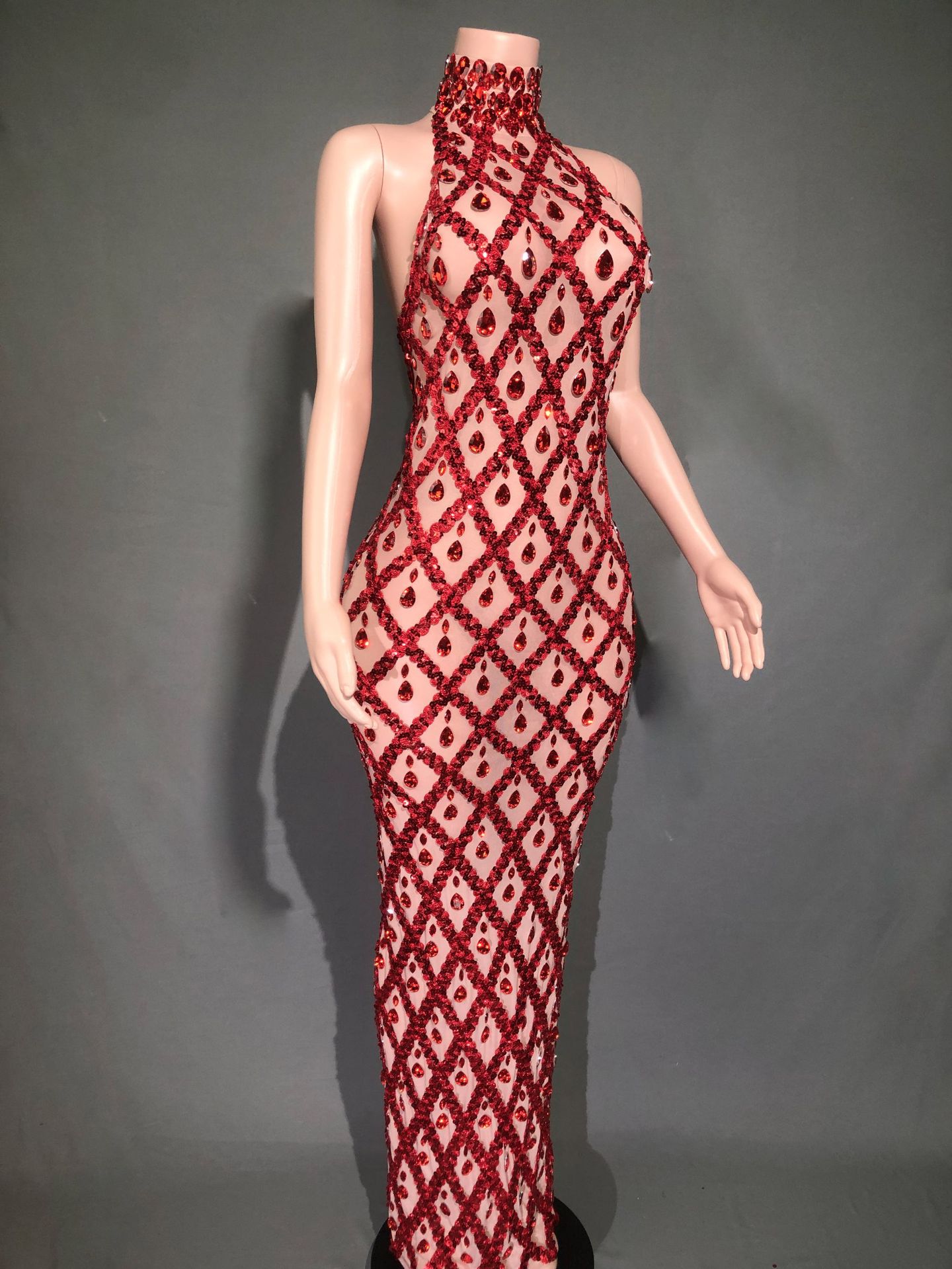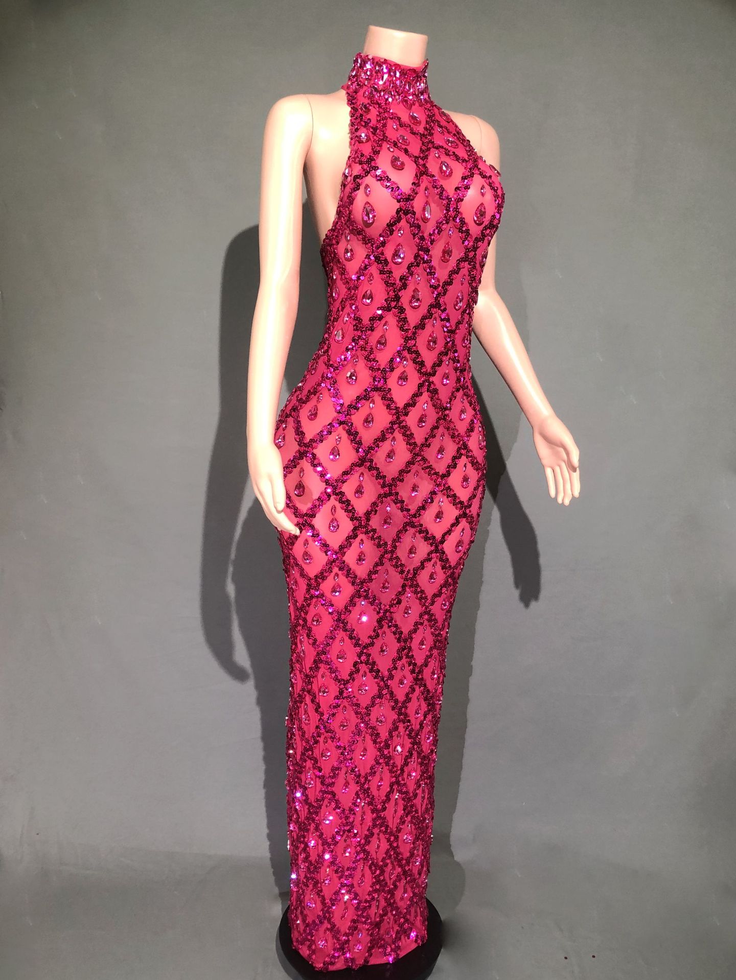 Plus Size Women's Evening Party Shiny Rhinestone Dress