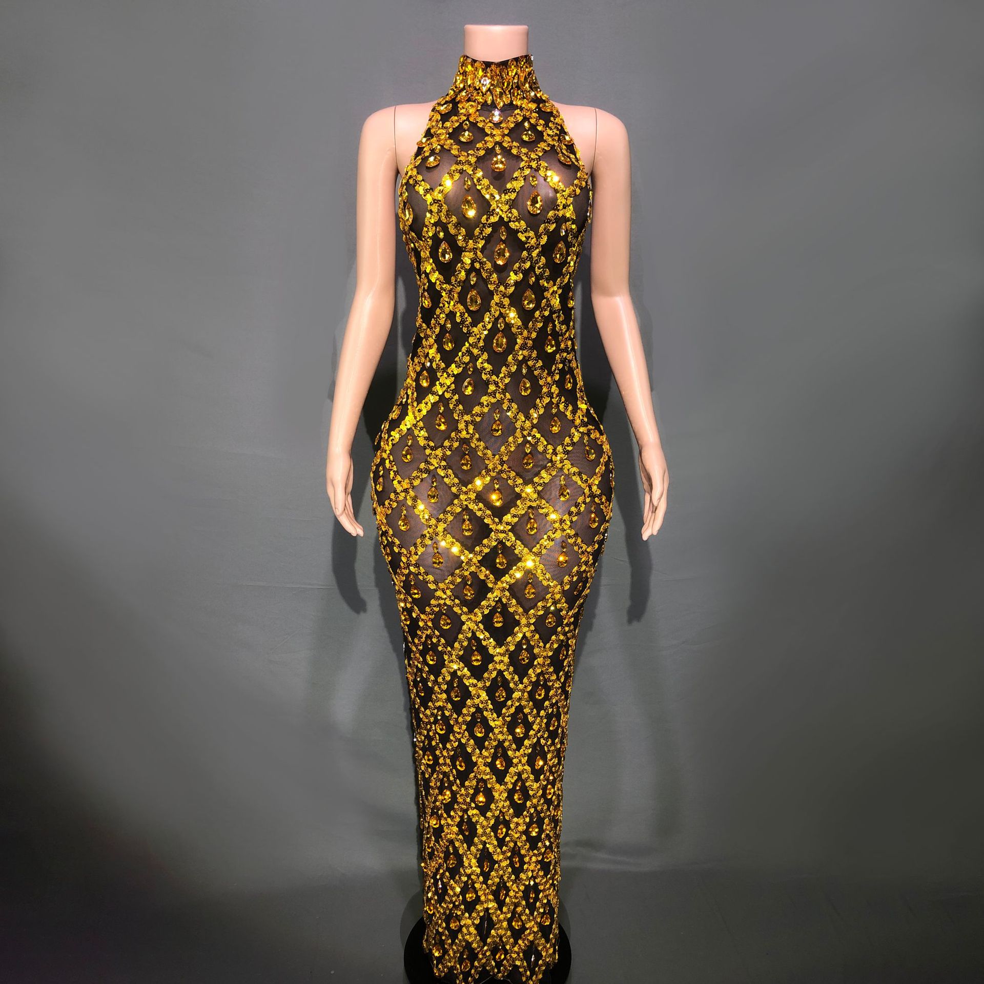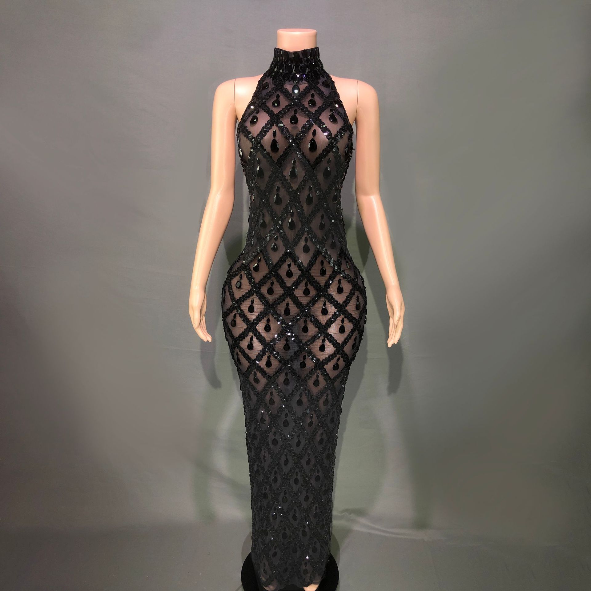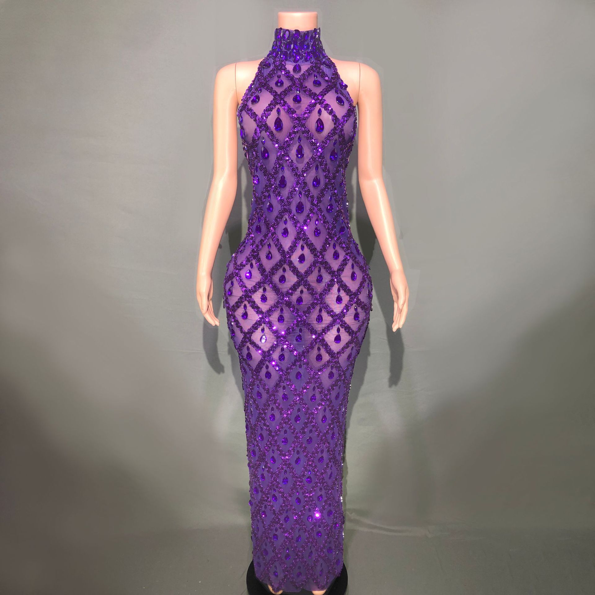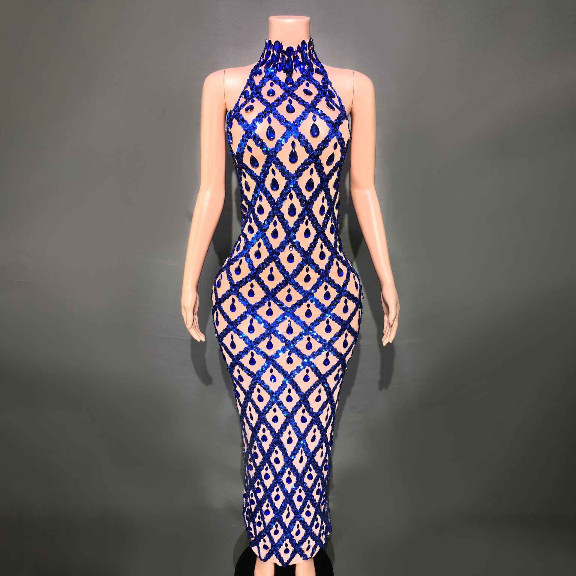 Plus Size Women's Evening Party Shiny Rhinestone Dress