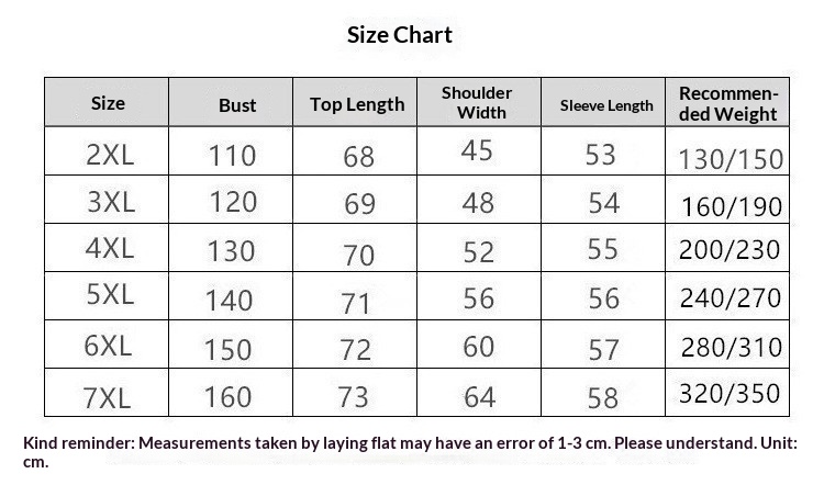 Sizes: 2XL, 3XL, 4XL, 5XL, 6XL, 7XL