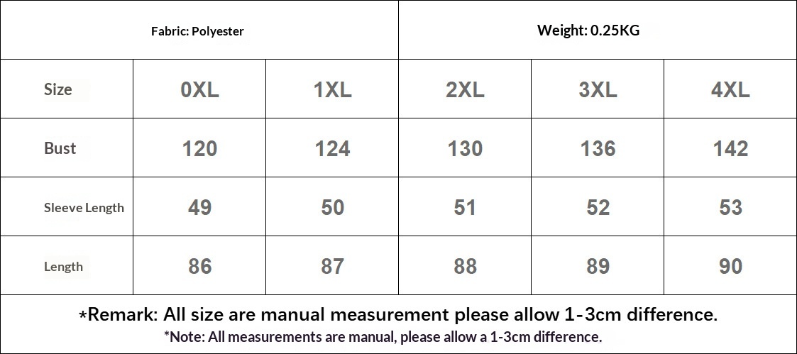 Size: 0XL, 1XL, 2XL, 3XL, 4XL