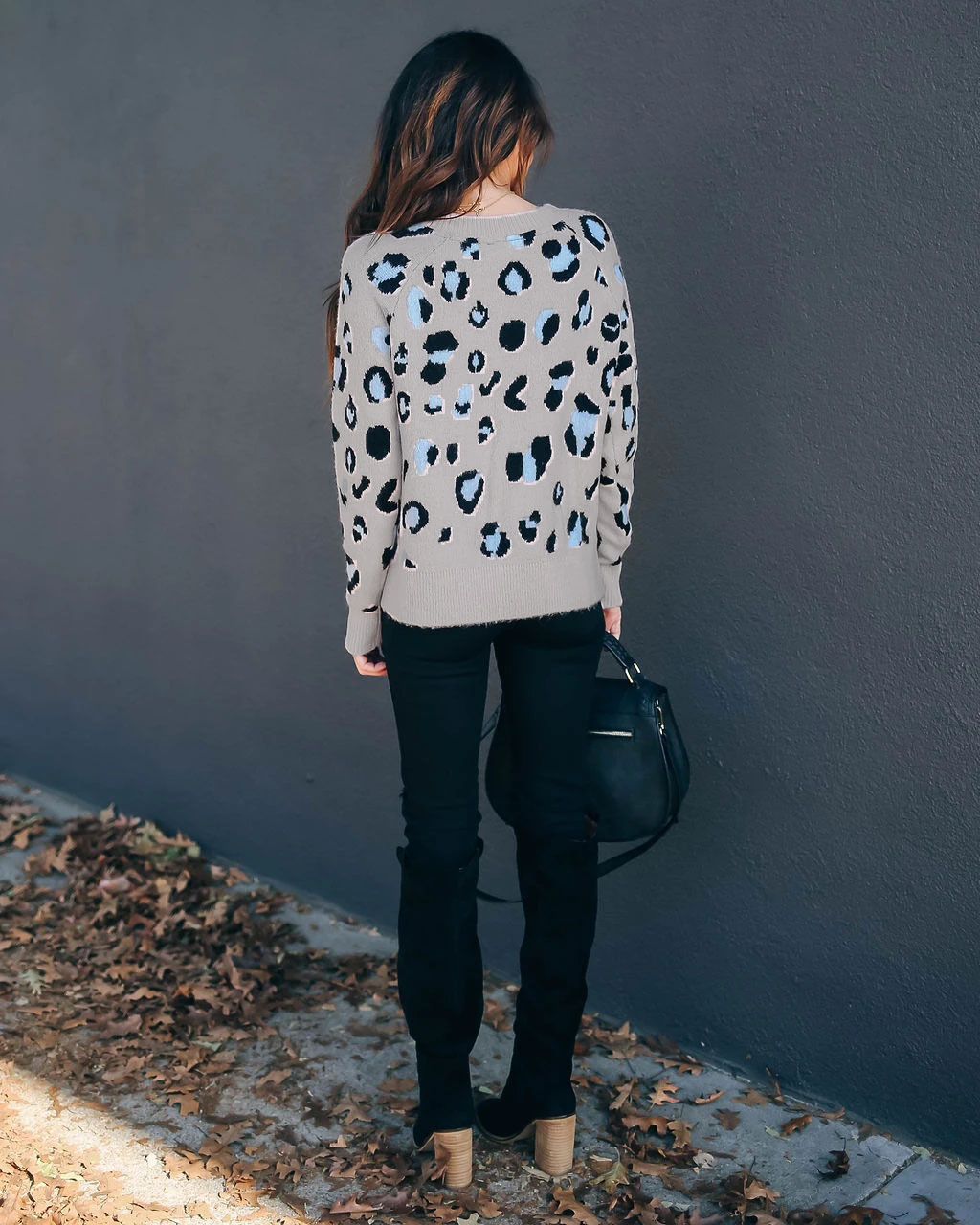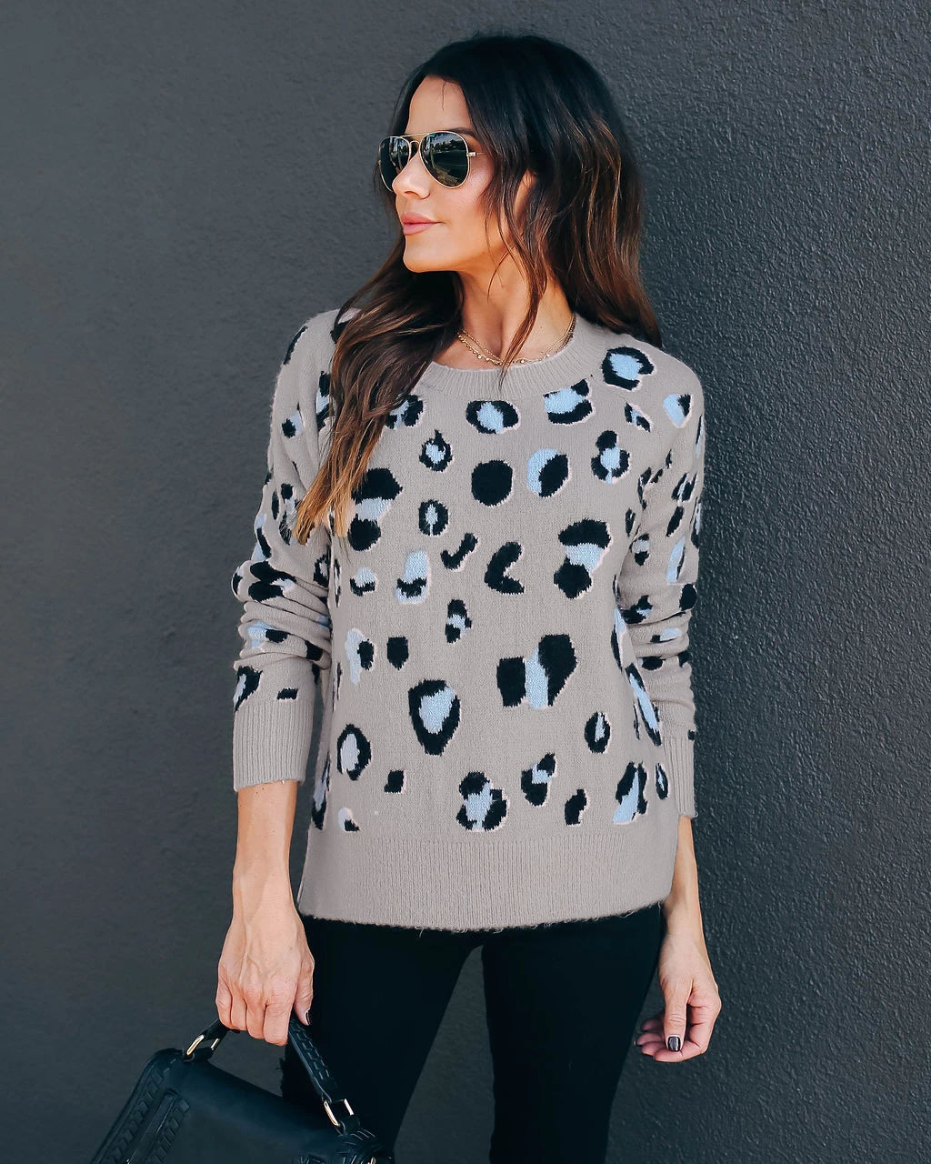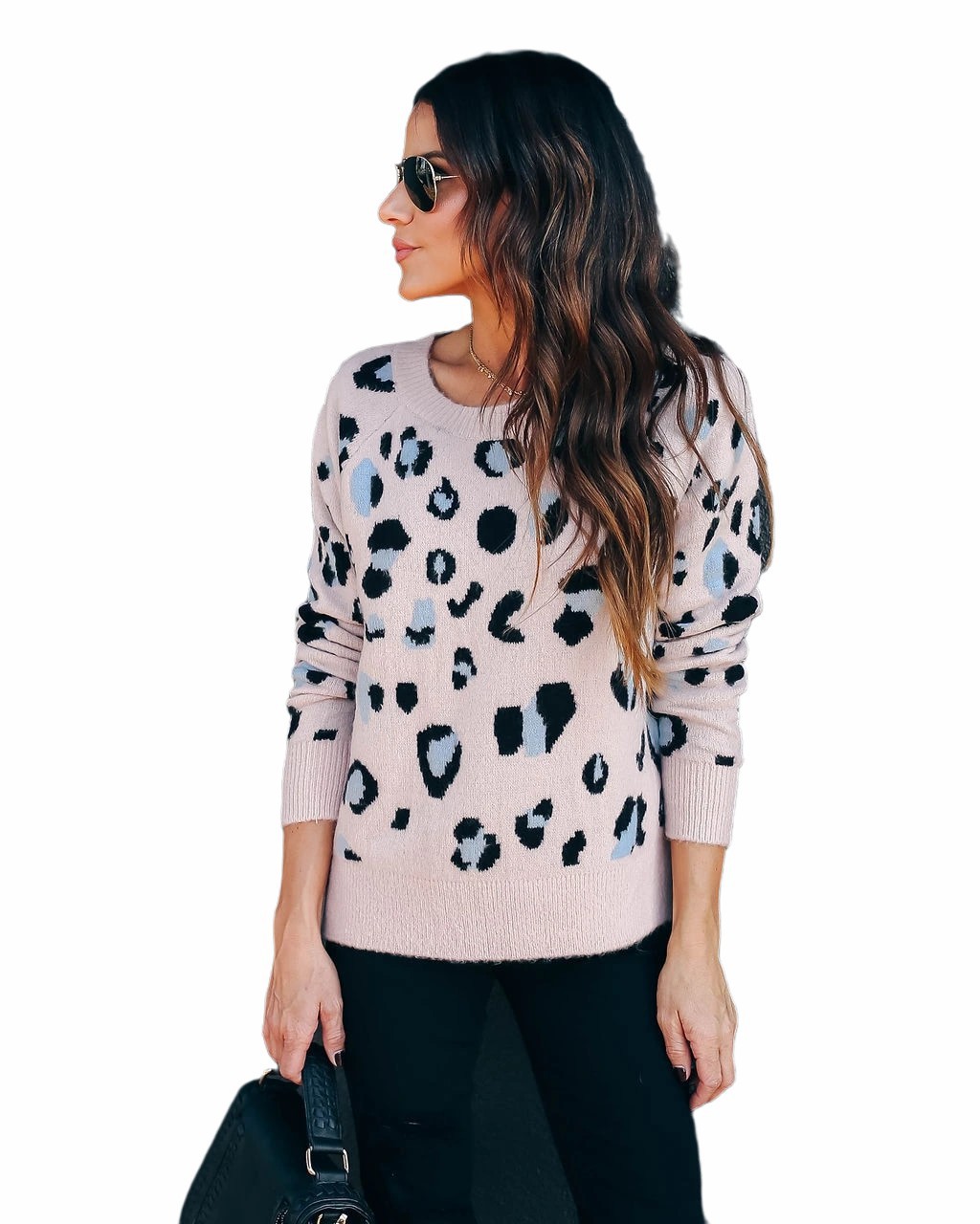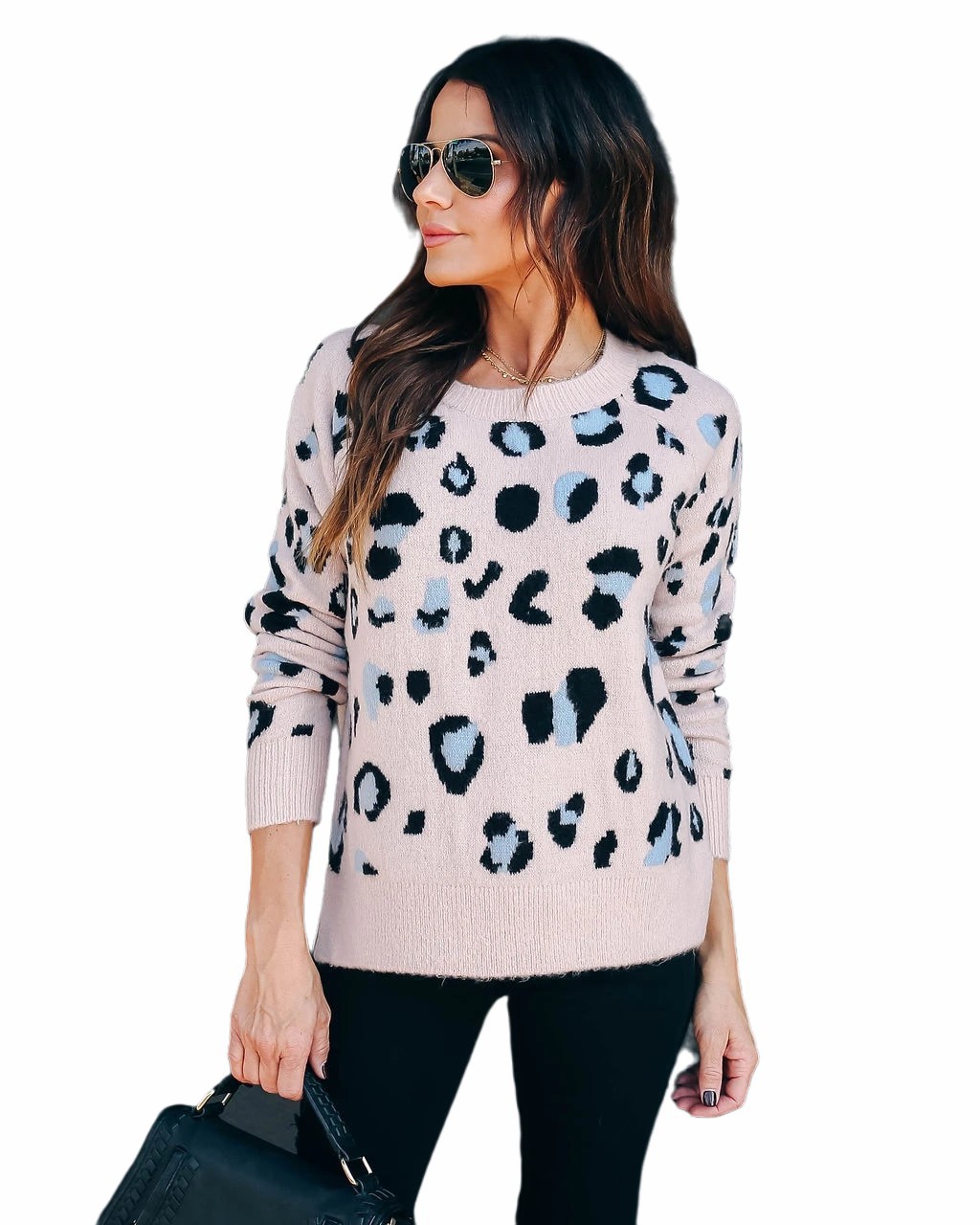 Plus Size Women's Sweater Leopard Print Knitwear Base Clothing Sweater