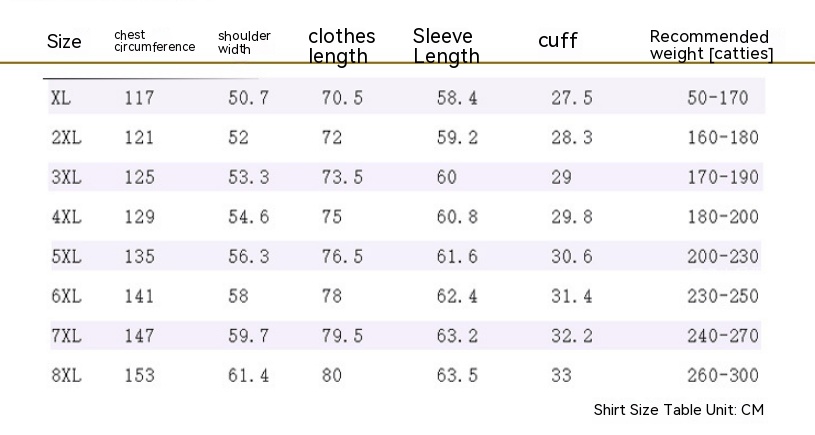 Size: XL,2XL,3XL,4XL,5XL,6XL,7XL,8XL