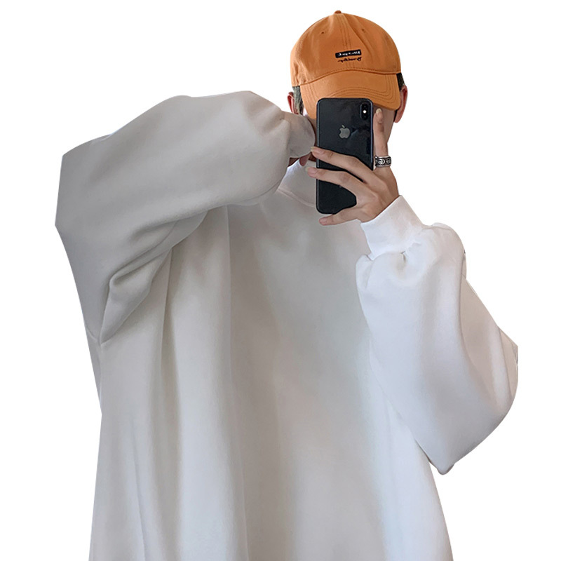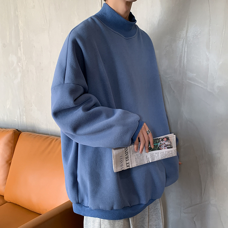 Plus Velvet Sweater Men's Tide Ins Hong Kong Style Loose Couple Wear Spring And Autumn Half High Collar Pink Hooded Top Autumn And Winter