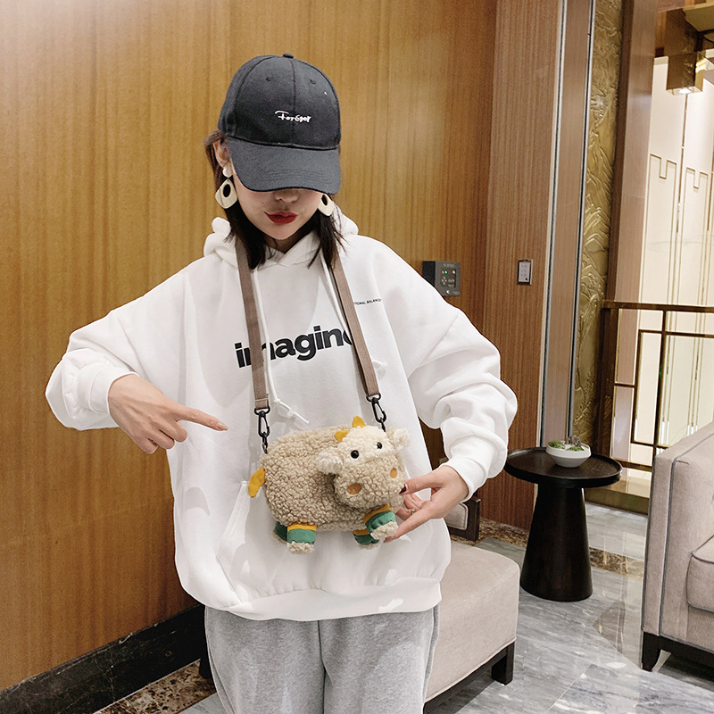 Plush Bag Female Cartoon Lamb Student One Shoulder Crossbody Bag