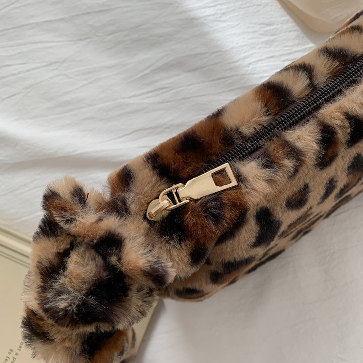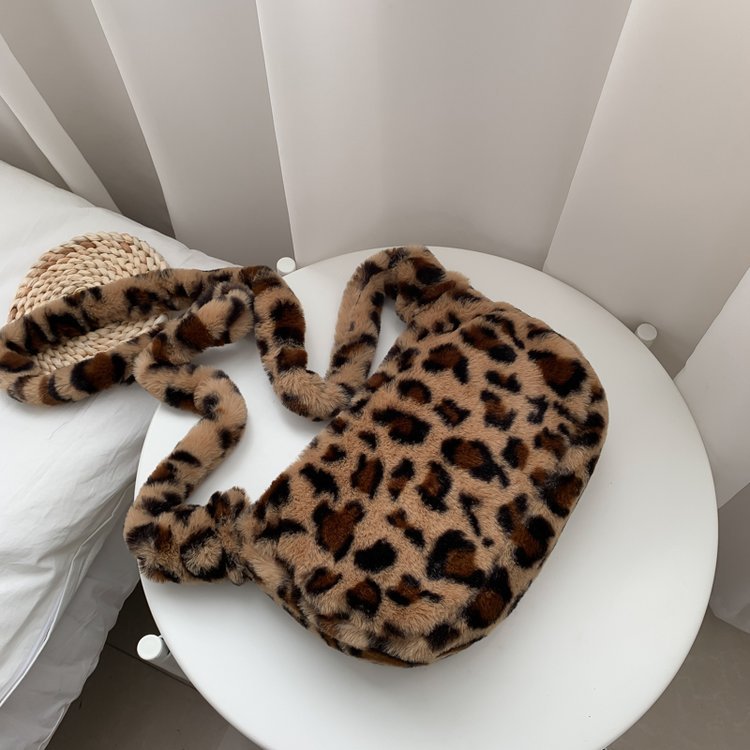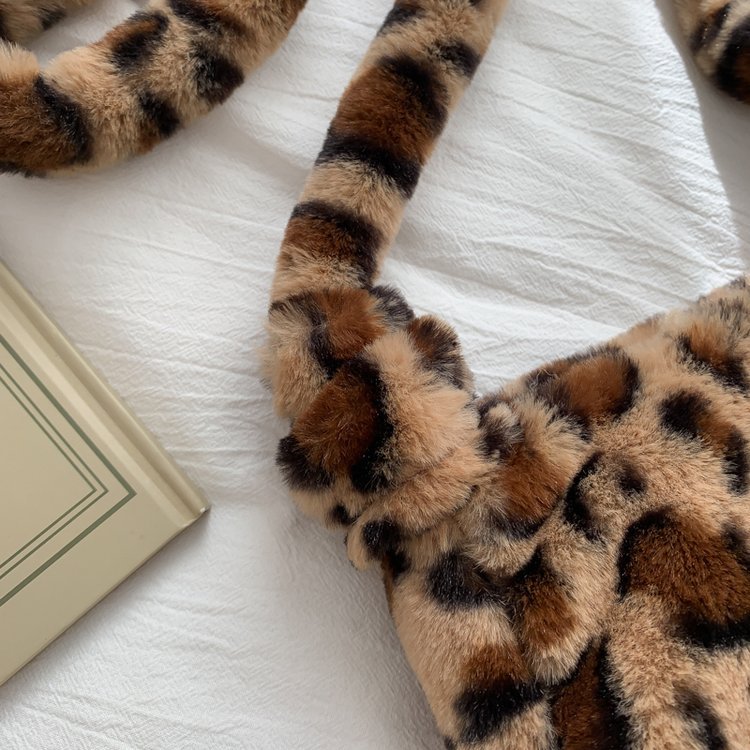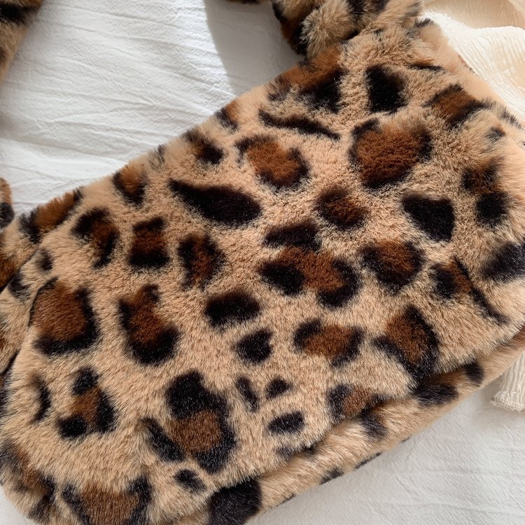 Color: plush bag with leopard print light coffee, plush bag with leopard print dark coffee, plush bag with leopard print white, plush bag with pink, plush bag with yellow, plush bag with blue, plush bag Black, plush bag white, pink, brown leopard print
