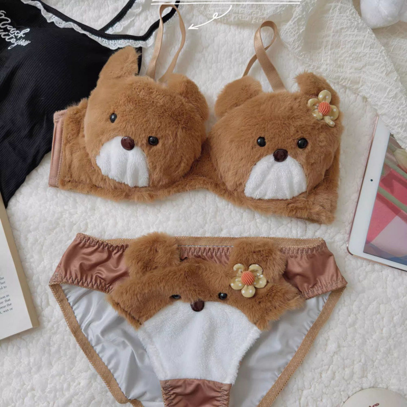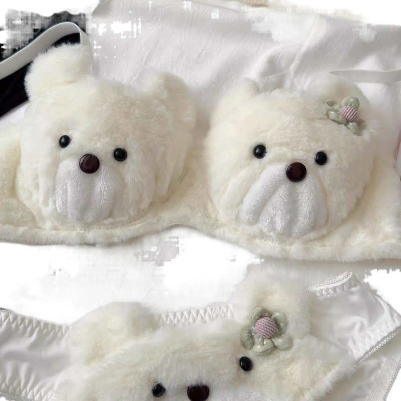 Plush Bear Bra Set Cute Cartoon Without Steel Ring