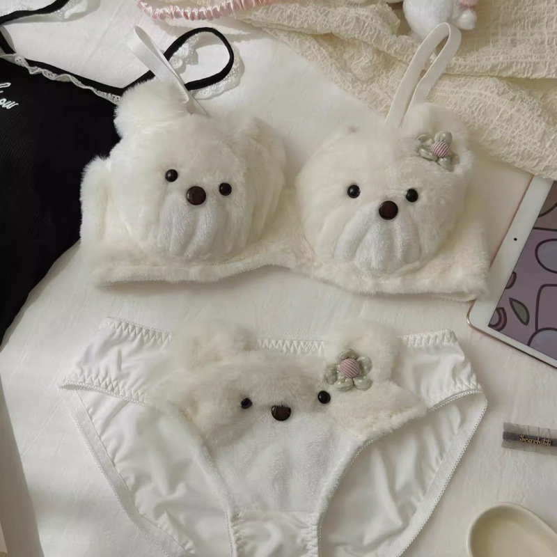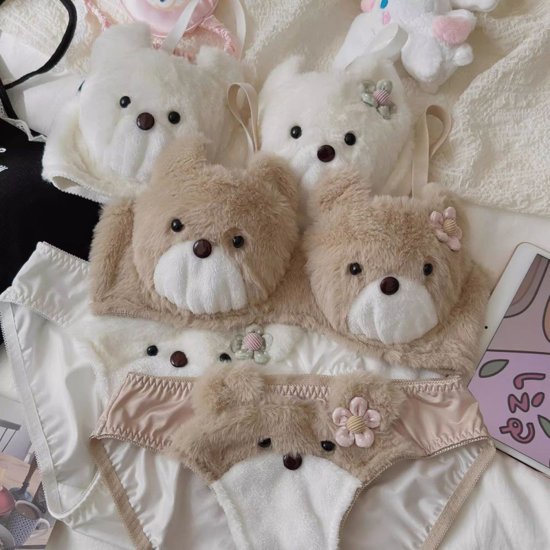 Color: Bear plush bra set light brown, Bear plush bra set White, Bear plush bra set coffee color, Bear plush underwear 3 pairs/pack