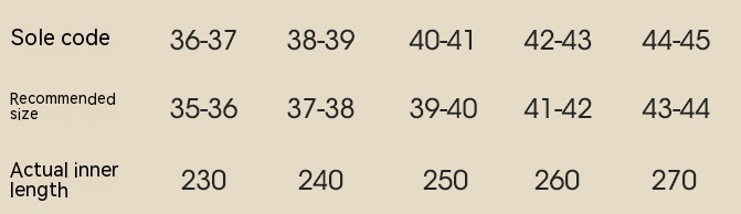 Sizes: 36/37 (suitable for 35-36 feet), 38/39 (suitable for 37-38 feet), 40/41 (suitable for 39-40 feet), 42/43 (suitable for 41-42 feet), 44/45 (suitable for 43-44 feet)