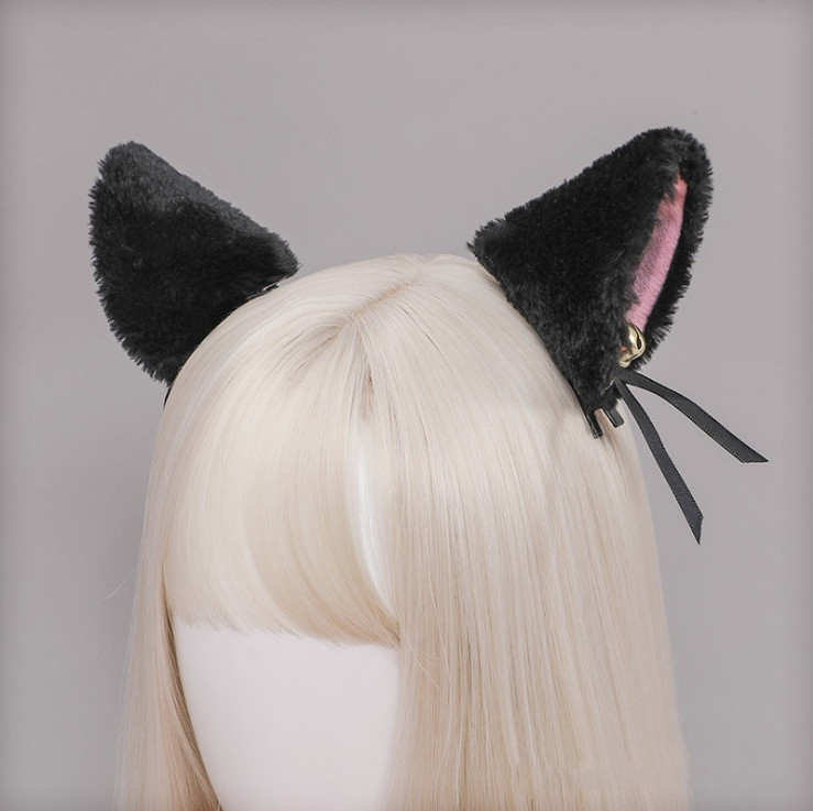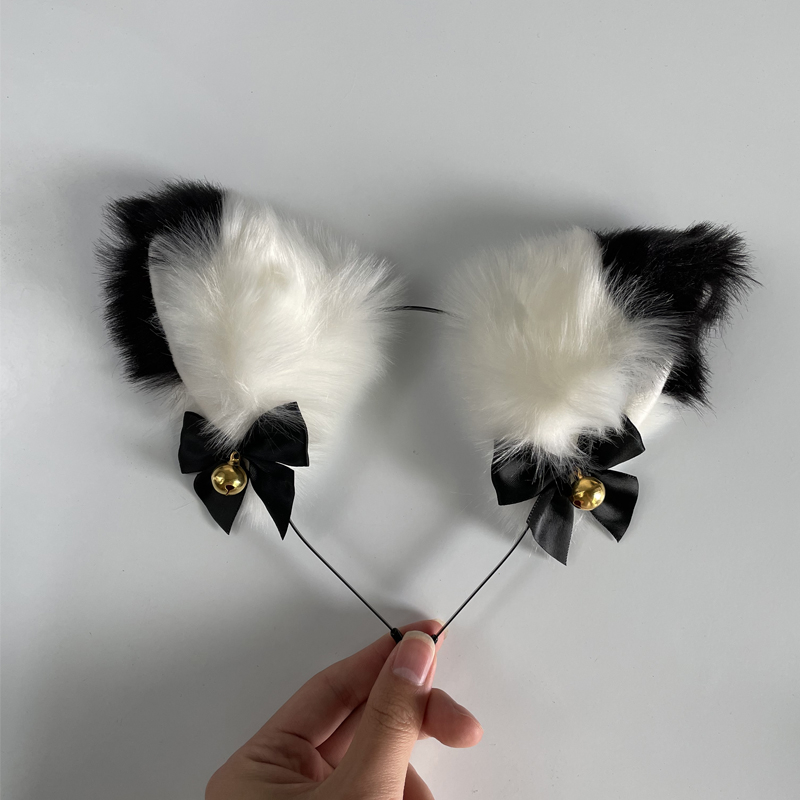 W: White and black cat ear hairpin [upgrade],