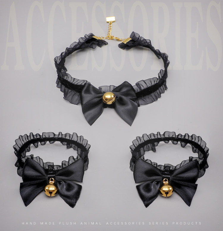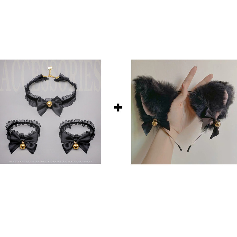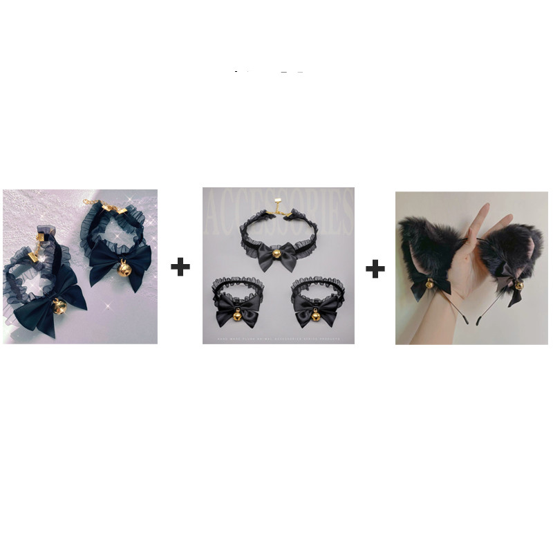 S: Hand bell + foot bell + neck bell + cat ear headband black 6-piece set,