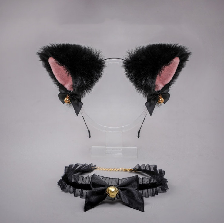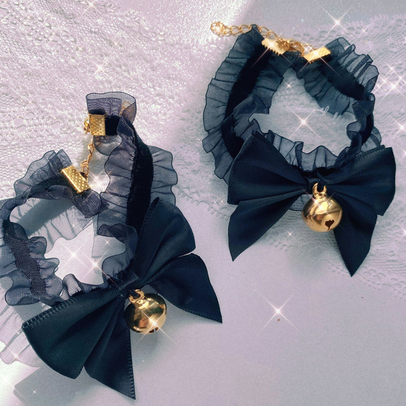 C: Black hair pink hair band + black lace bow neck bell,