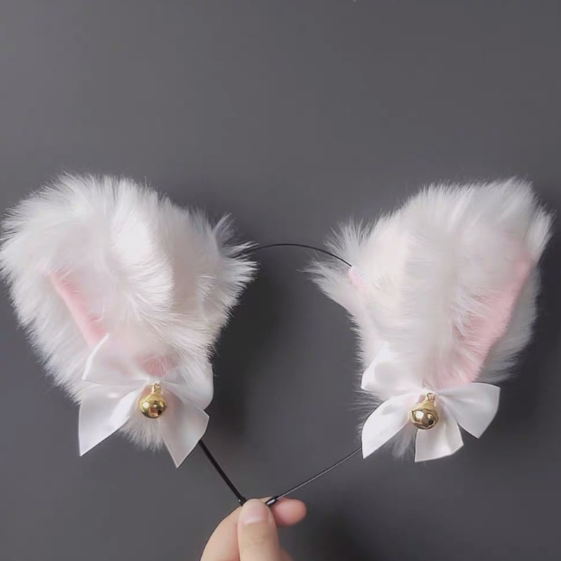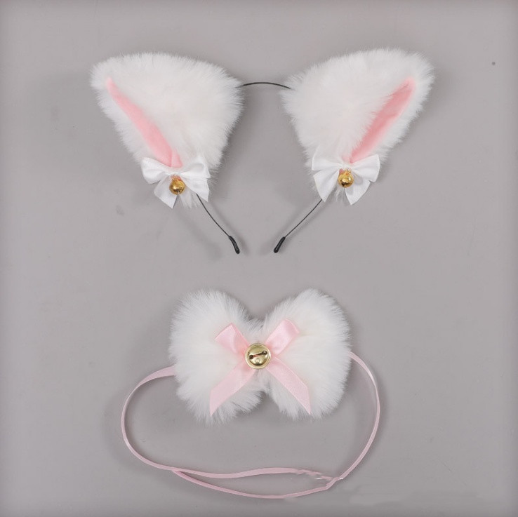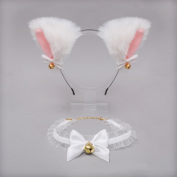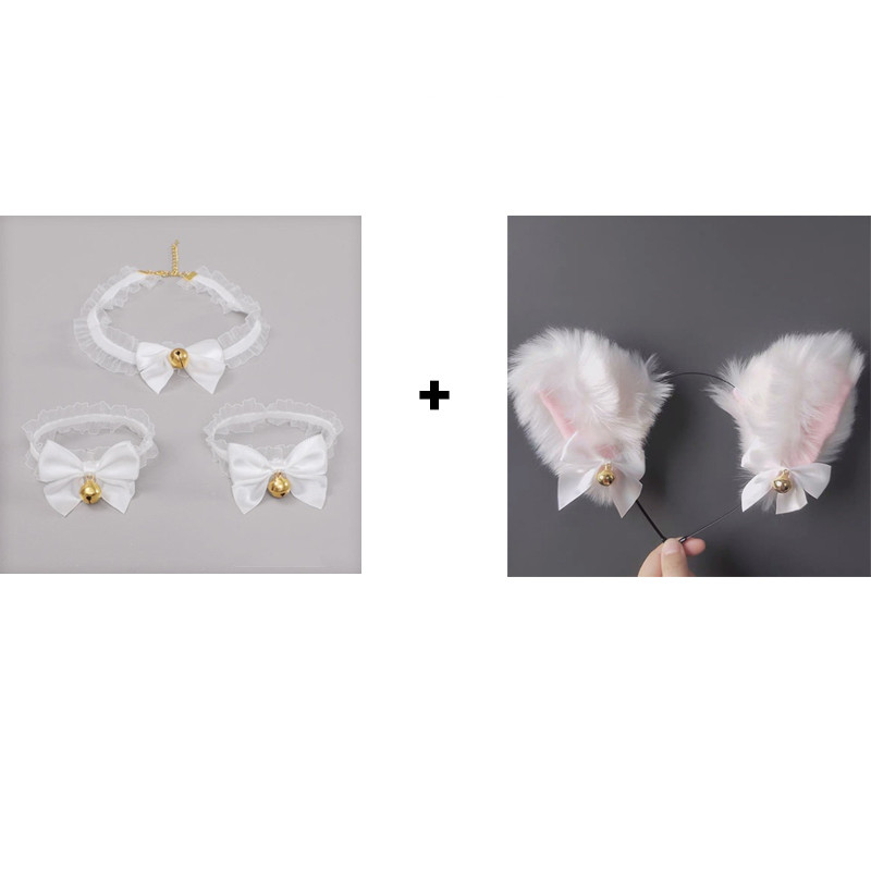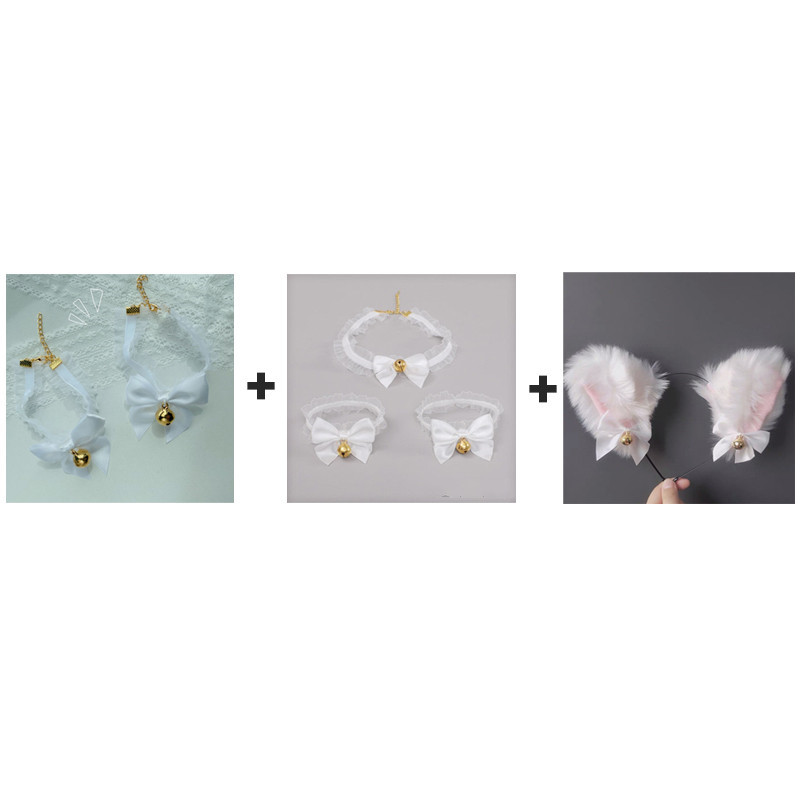 T: Hand bell + foot bell + neck bell + cat ear hair band white 6-piece set,