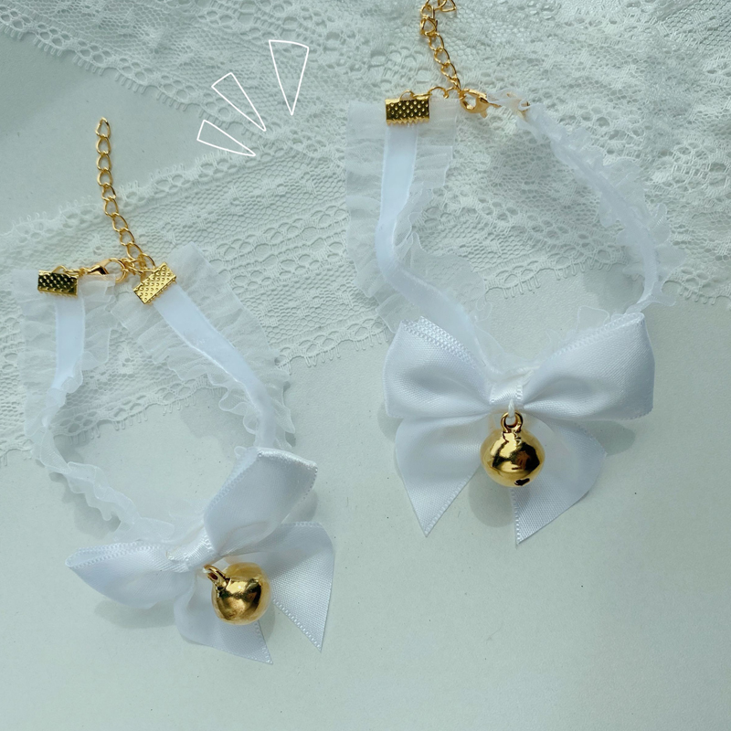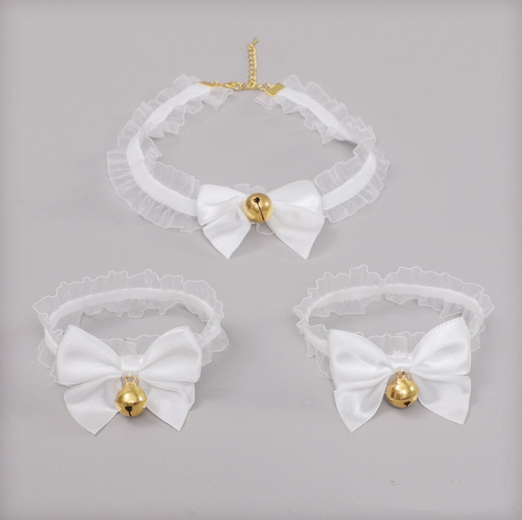 F: White hair pink hair band + white lace bow neck bell,