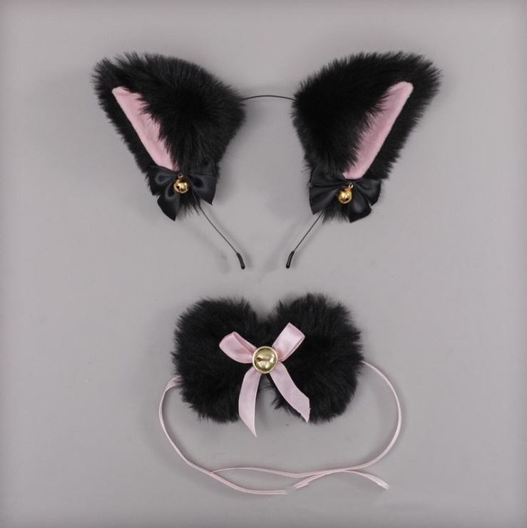P: [Black] Hand bell + neck bell + black hair pink hair band,