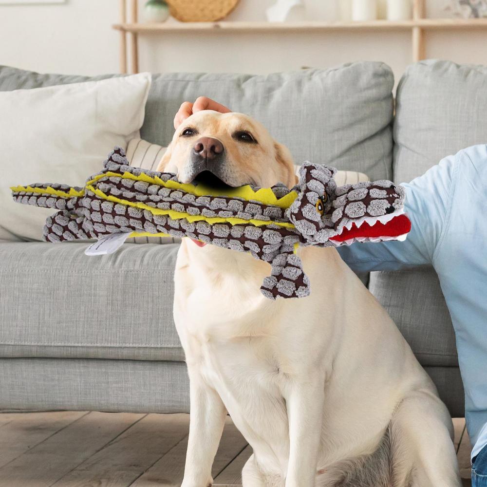 1. Engaged Playful Pups: Entice your dog's senses with our plush squeaky toy's unique crocodile design, ensuring hours of active play and satisfying chews.