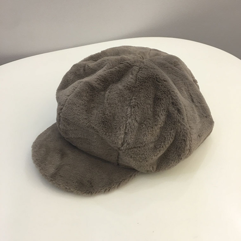 Color: Beige-plush octagonal cap, caramel-plush peak cap, gray-plush octagonal cap, black-plush octagonal cap