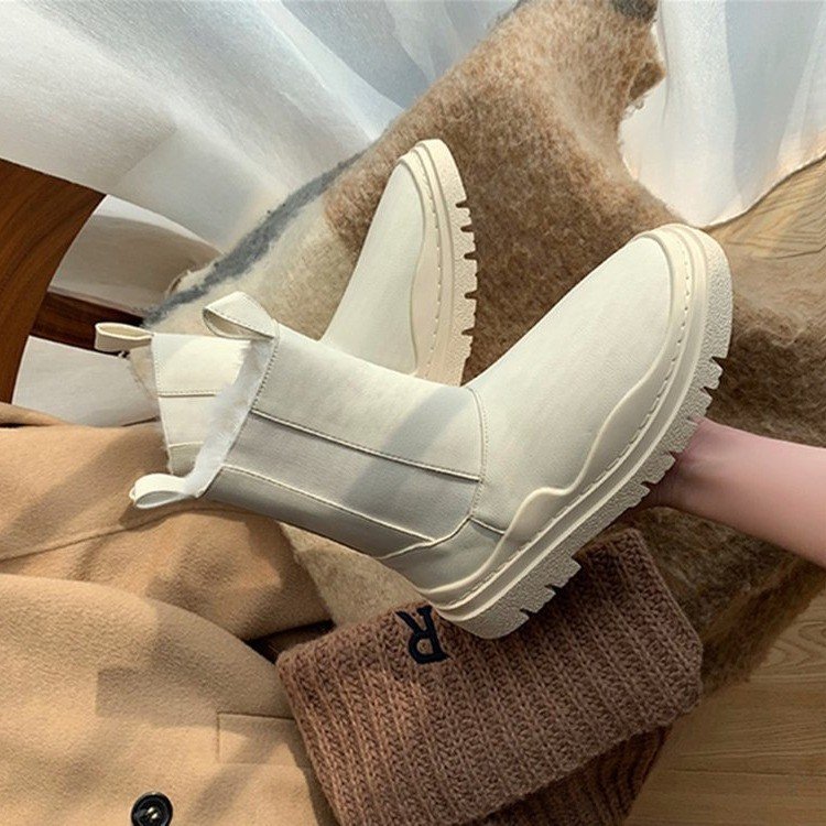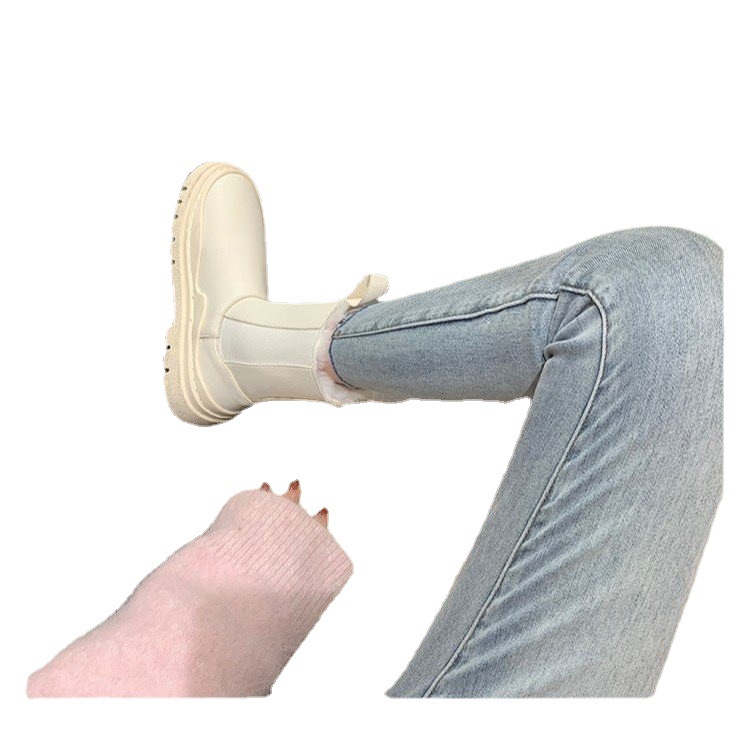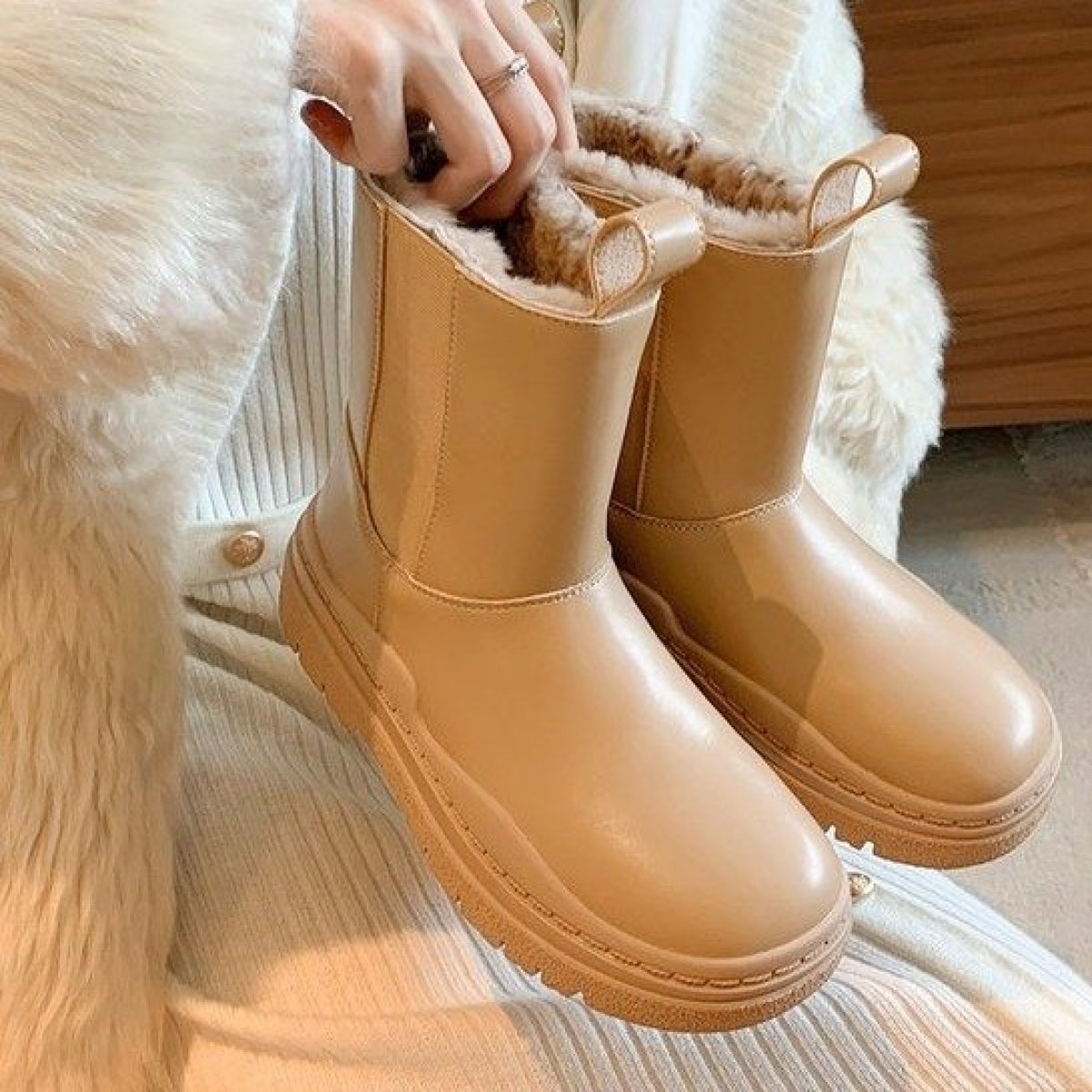 Plush Thick-soled Elastic Waterproof And Anti-fouling Snow Round Toe Cotton Boots