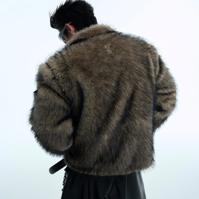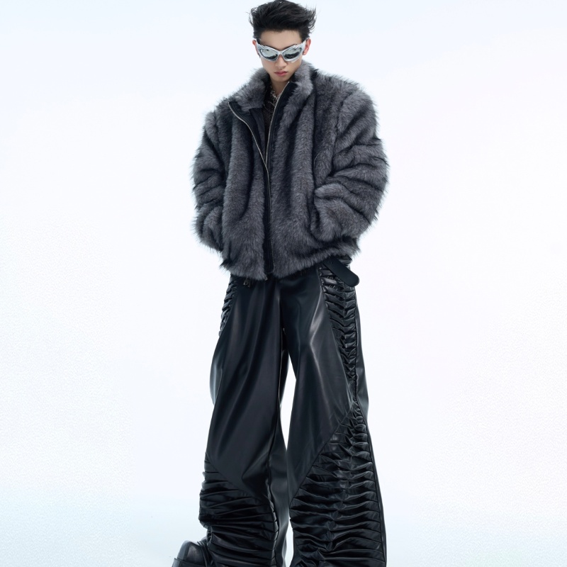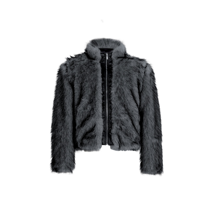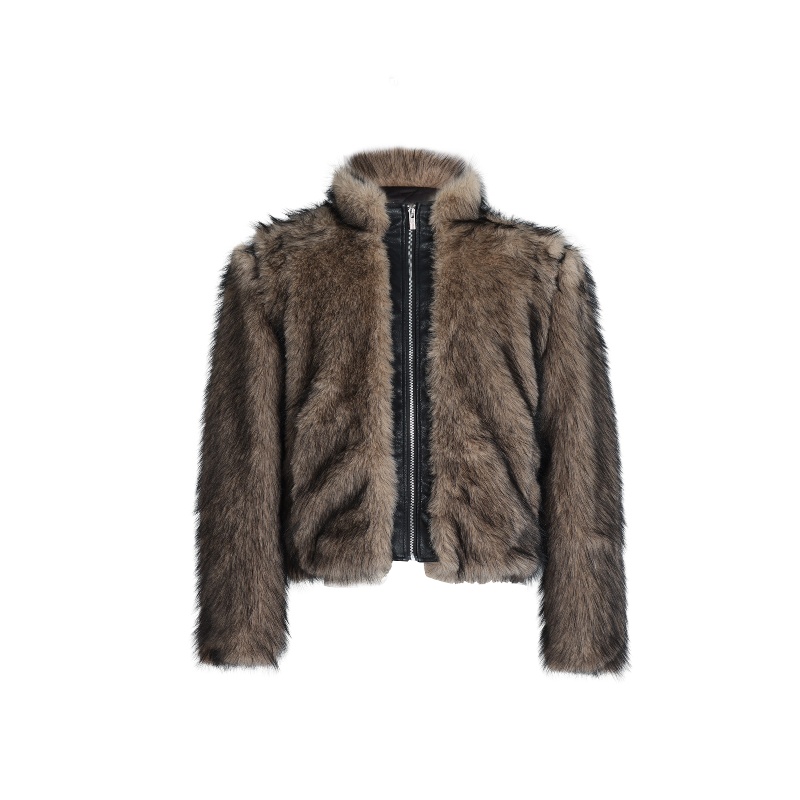 Plush Thickened Coat PU Leather Stitching Fur Short Baggy Coat
