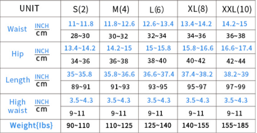 Size: S(2),M(4),L(6),XL(8),XXL-10