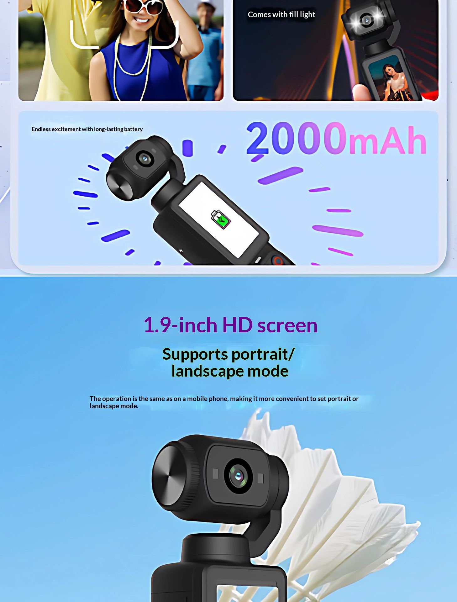 Pocket-sized HD Handheld Gimbal Ultra-clear Anti-shake Camera