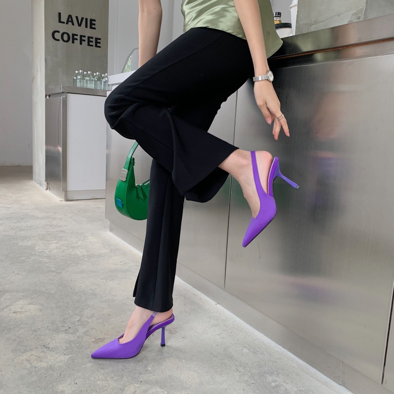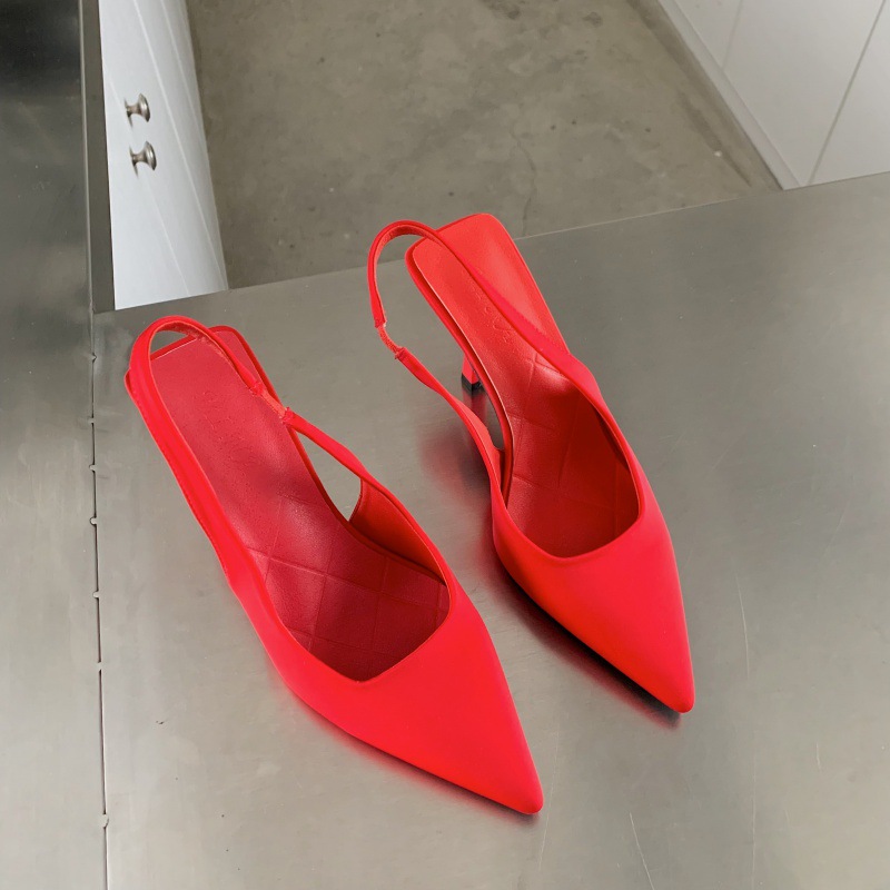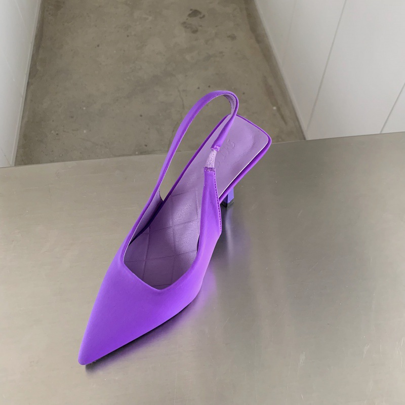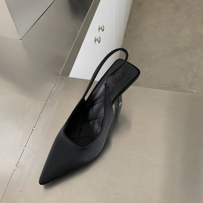 Pointed High Heel Sandals Women's Satin Spring New Sexy Stiletto Low-cut Back Empty High Heel Pumps -1