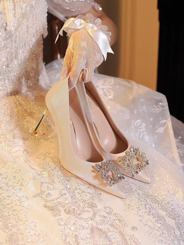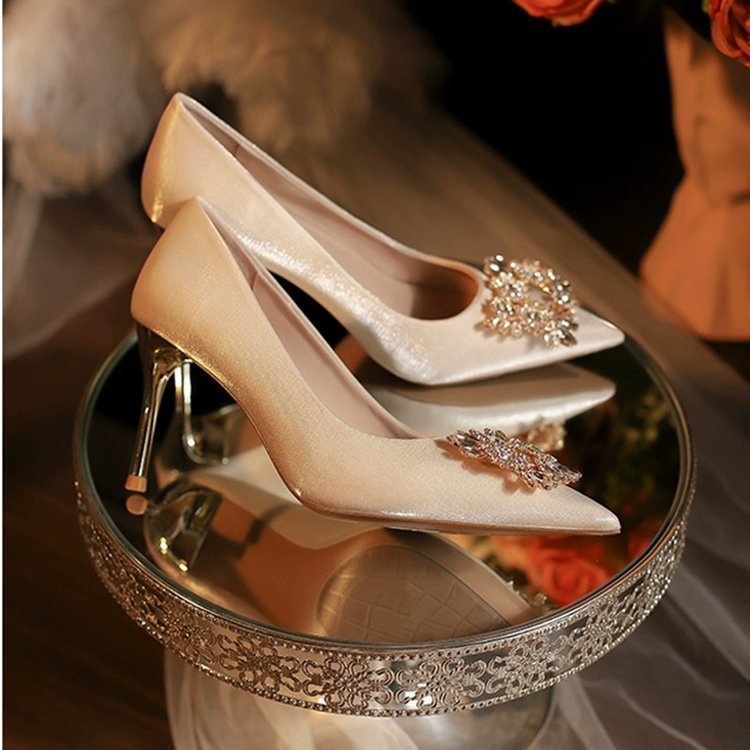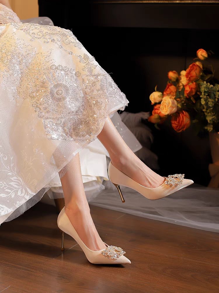 Pointed High Heels Women's Stiletto Heel New Wedding Shoes Xiuhe Wedding Dress Annual Meeting Pumps