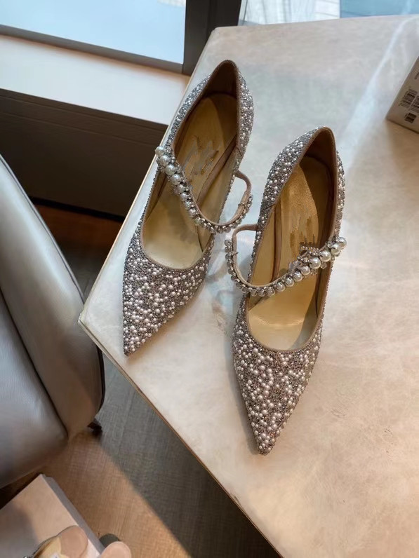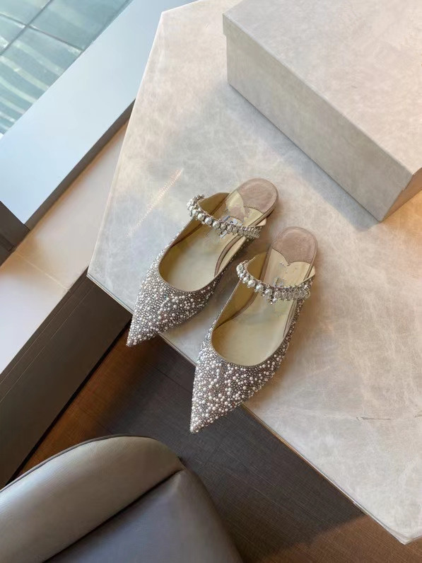 Pointed Shallow Mouth Rhinestones Pearl Flat High Heels Single Shoes Women