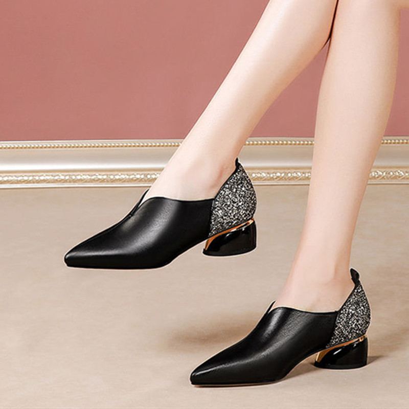 Popular elements: sequins, color matching, thick heel