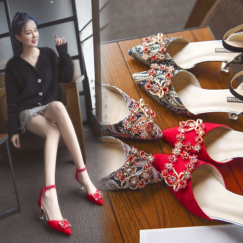 Popular elements: metal, rhinestones, shallow mouth, buckle