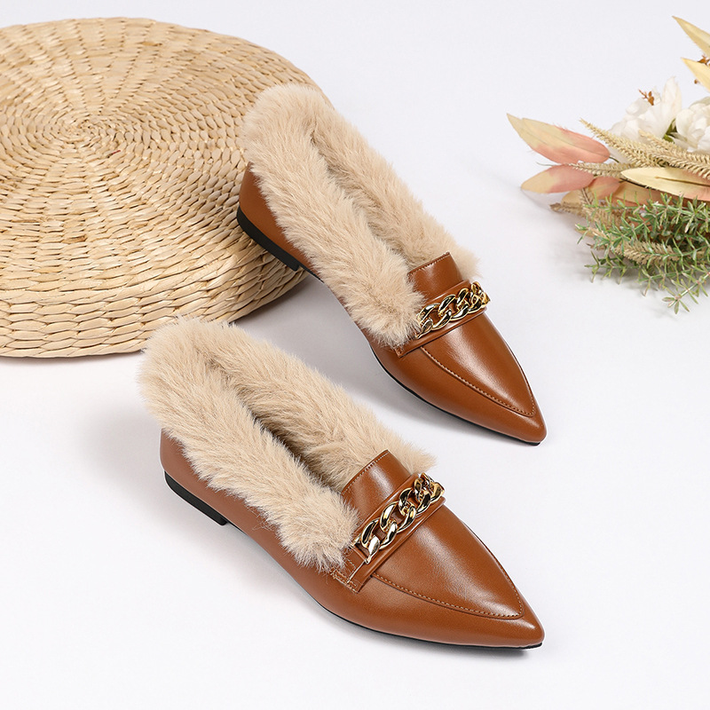 Pointed Toe Horsebit Buckle Toe Cap Plus Size Fluffy Shoes