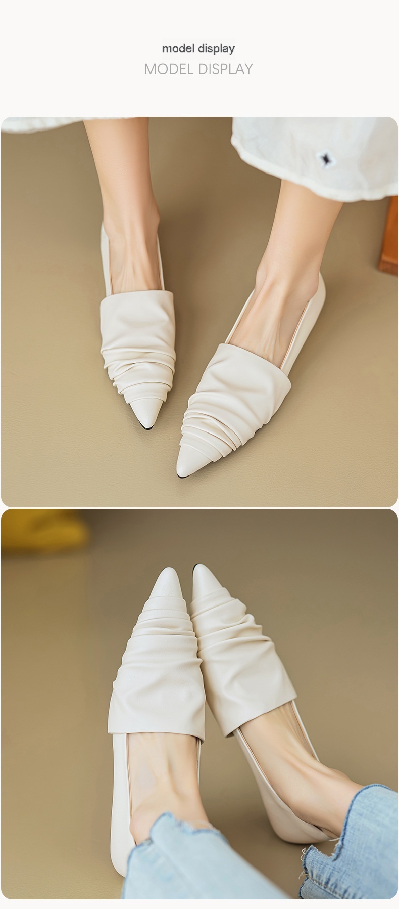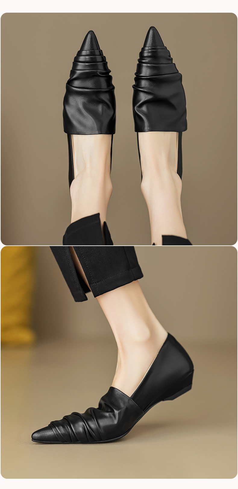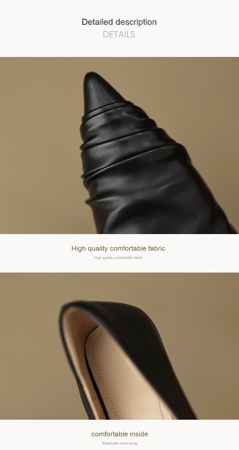 Pointed-toe Low Heel Flat Shoes Black Creamy-white