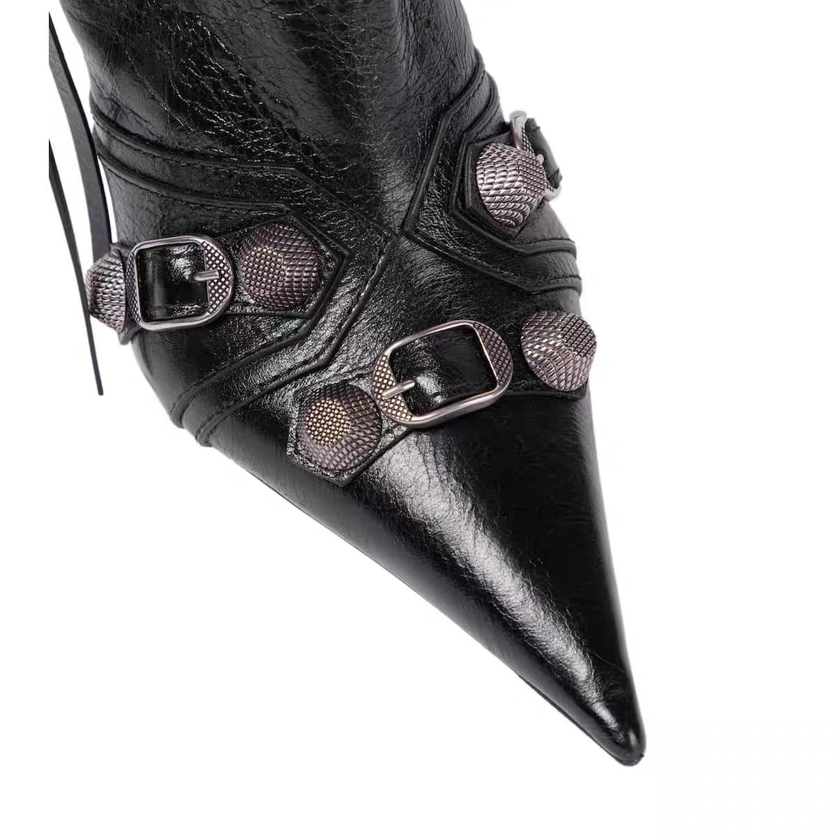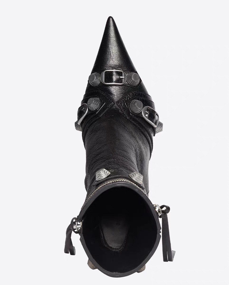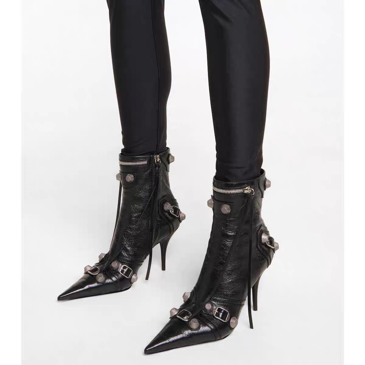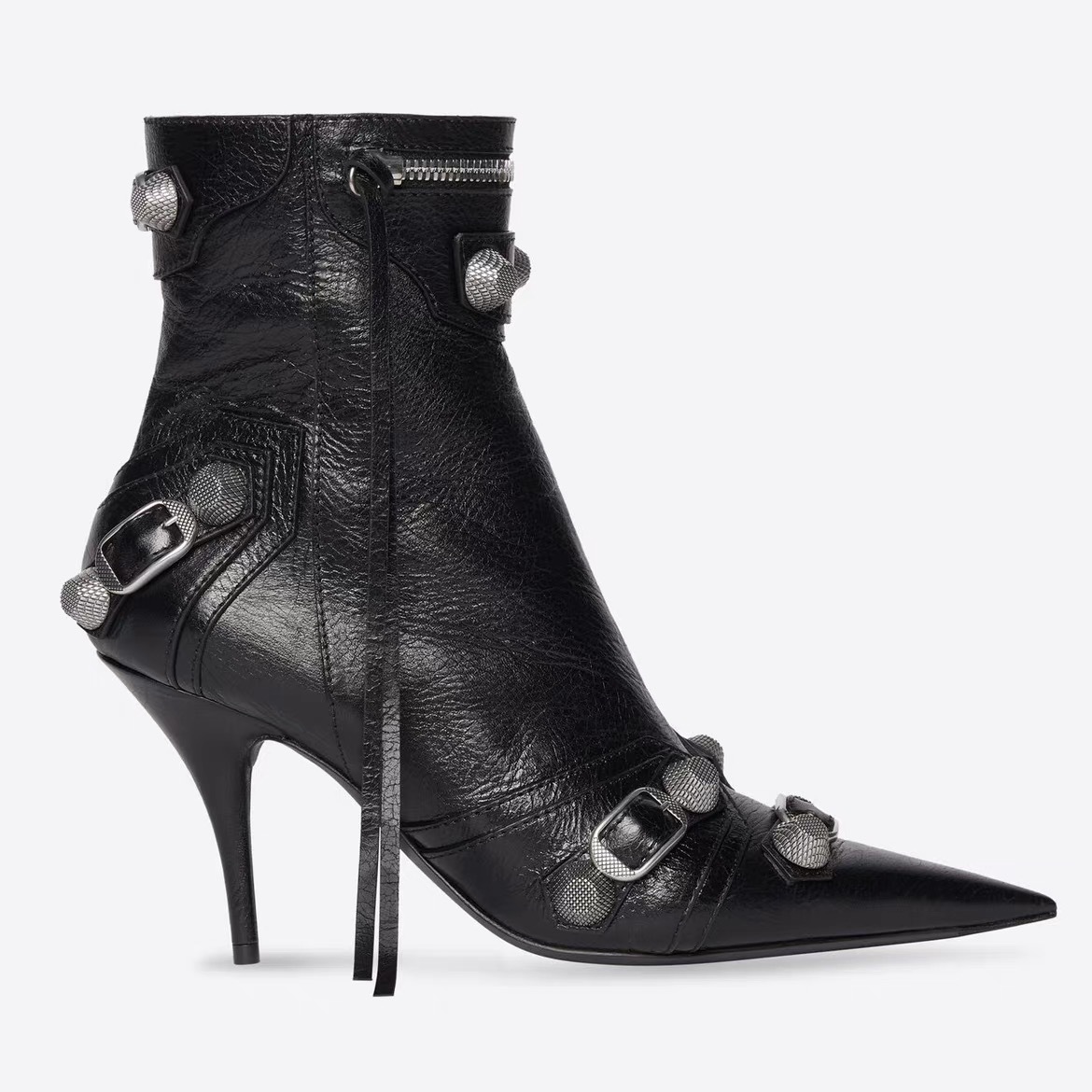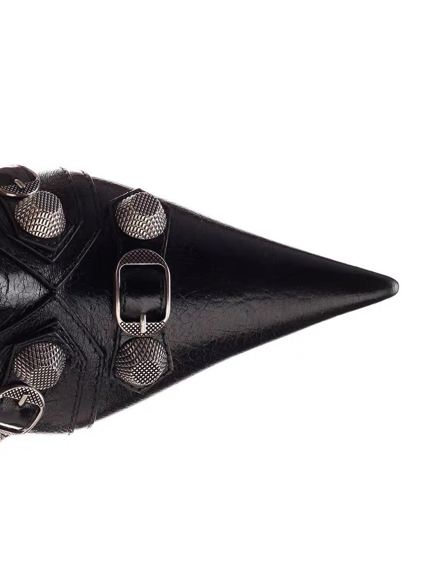 Pointed Toe Side Zipper Metal Stud Biker Booties