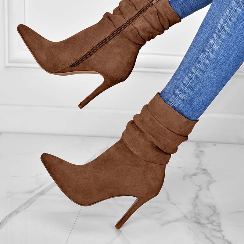 Pointed Toe Stiletto Heel Ankle Boots For Women Side Zipper Shoes