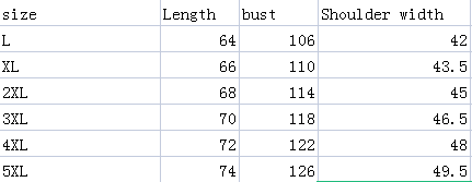 Size: L, XL, XXL, XXXL, XXXXL, 5XL