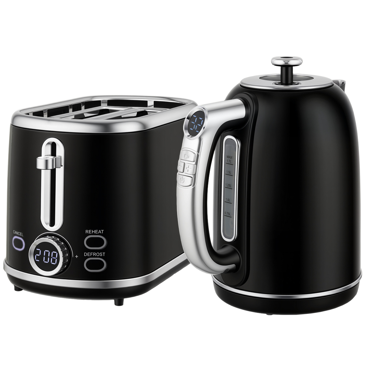 Enjoy hot beverages and toast just as you like it, with this retro-style set. The kettle is fitted with precise 40-100°C control: set the water to boil how hot you want - ideal for any specific beverages. Plus, it has a five-minute memory function - return kettle to the base within the time frame and it will continue to boil. Set includes a two slice toaster: with the six browning levels and defrost/reheat/cancel functions, it's super easy to control your way.