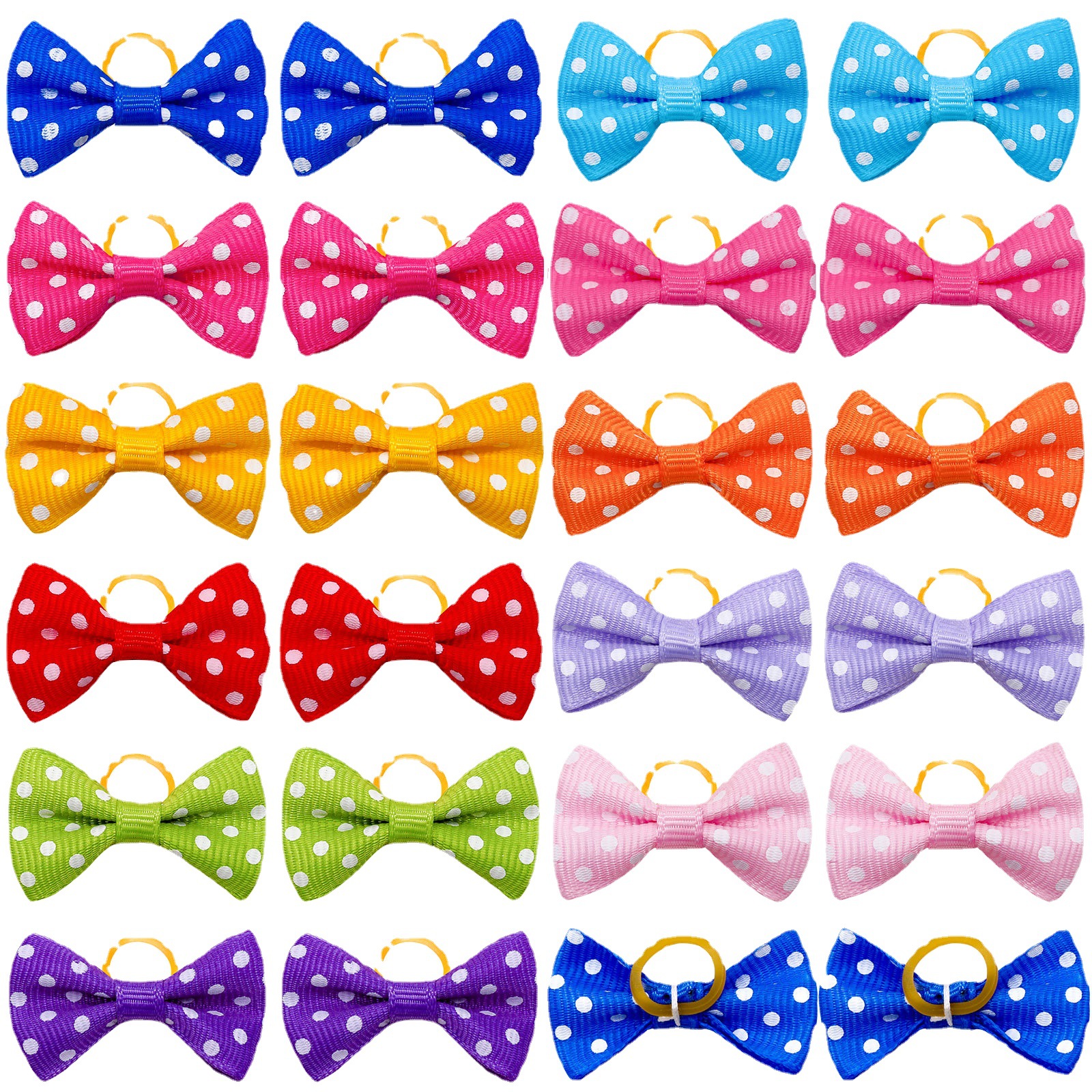 Polka Dot Bow Rubber Band Scrunchie Dog Cat Head Flower Accessories