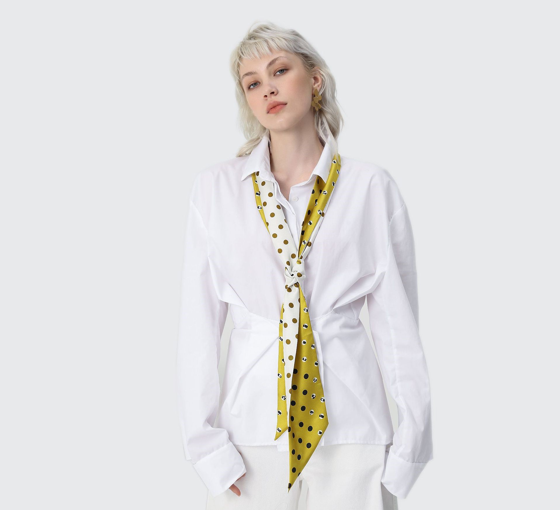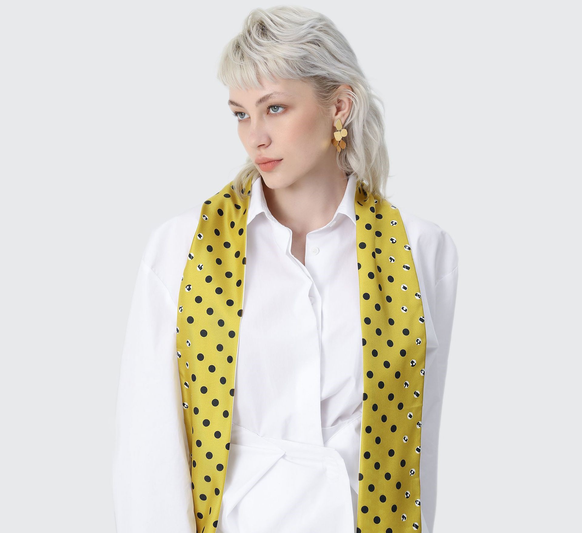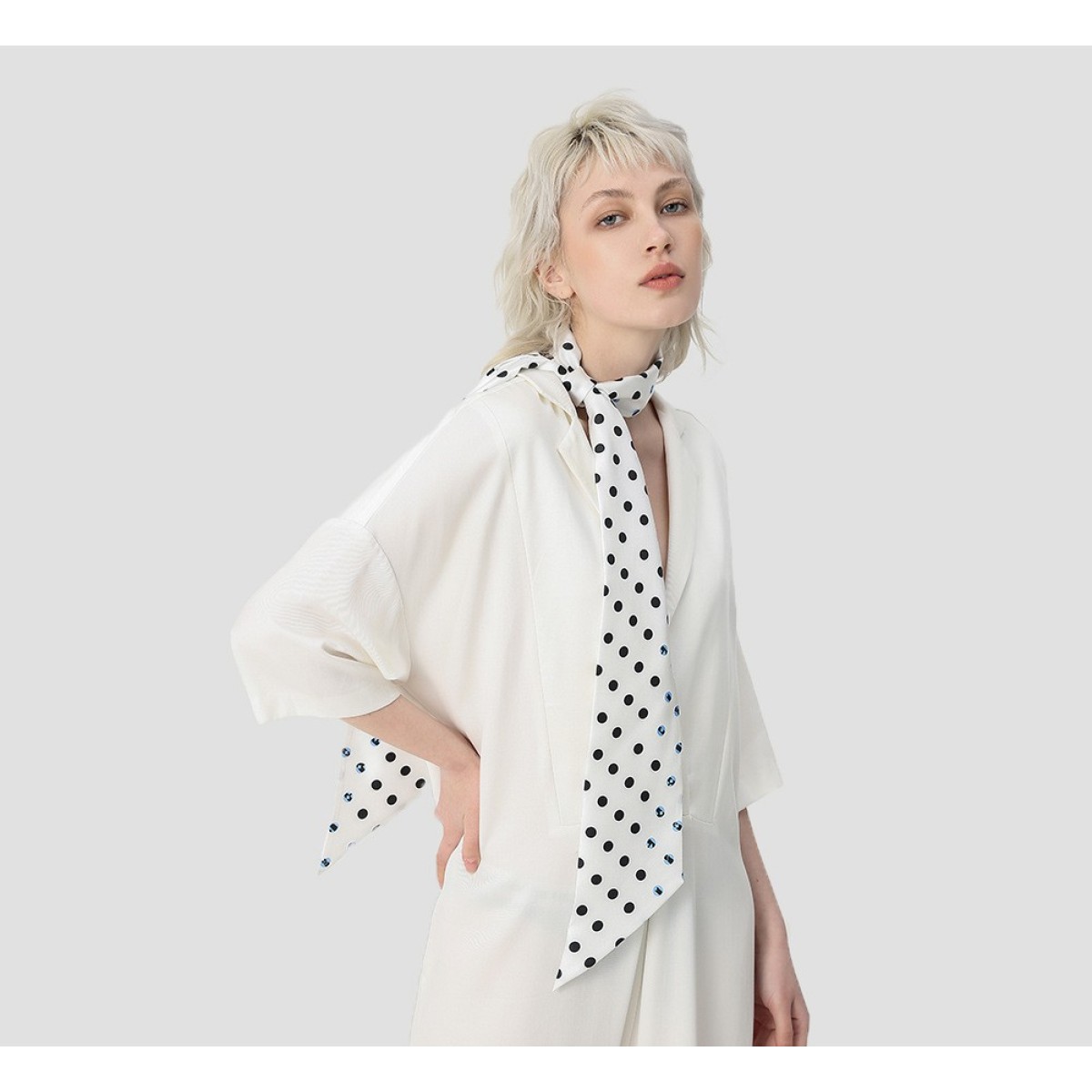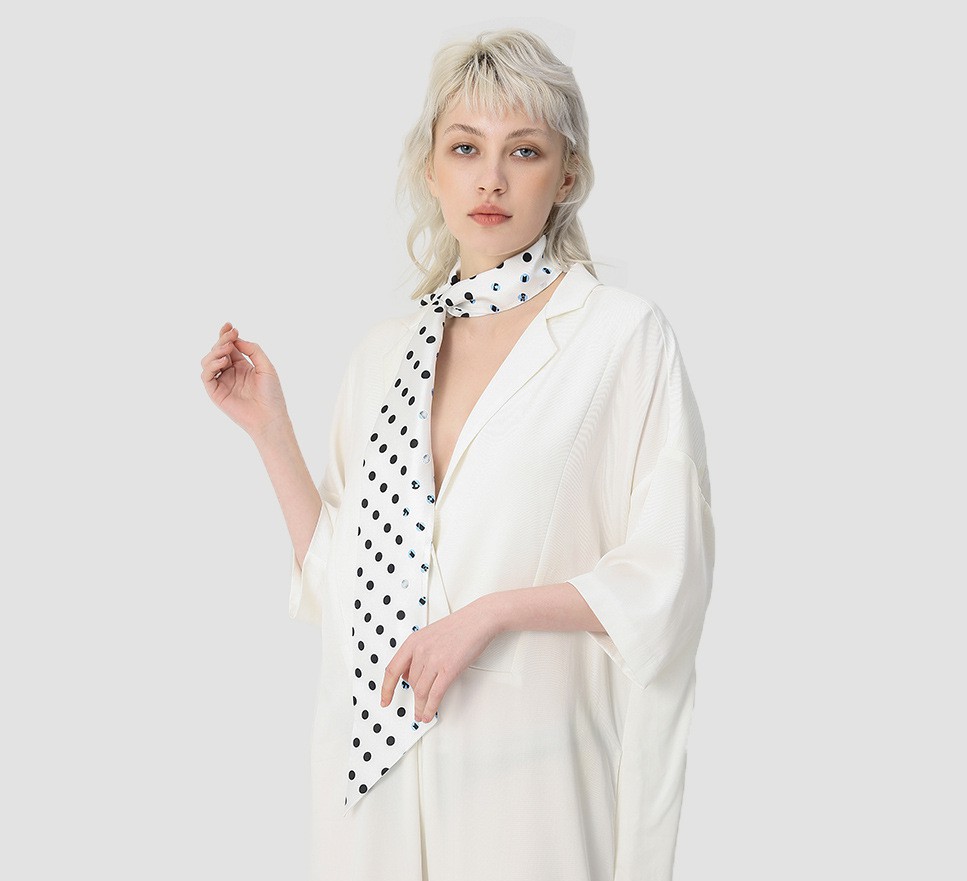 Polka dot double stitching small long scarf