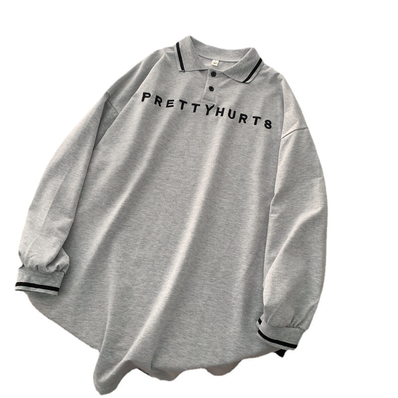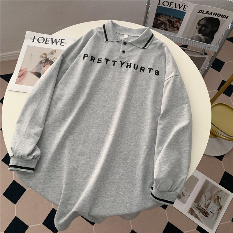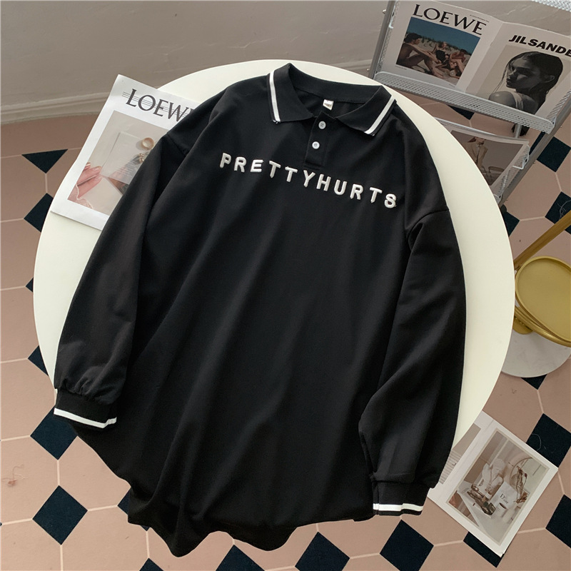 Polo Lapel Letter Embroidered Long-sleeved Sweater For Women