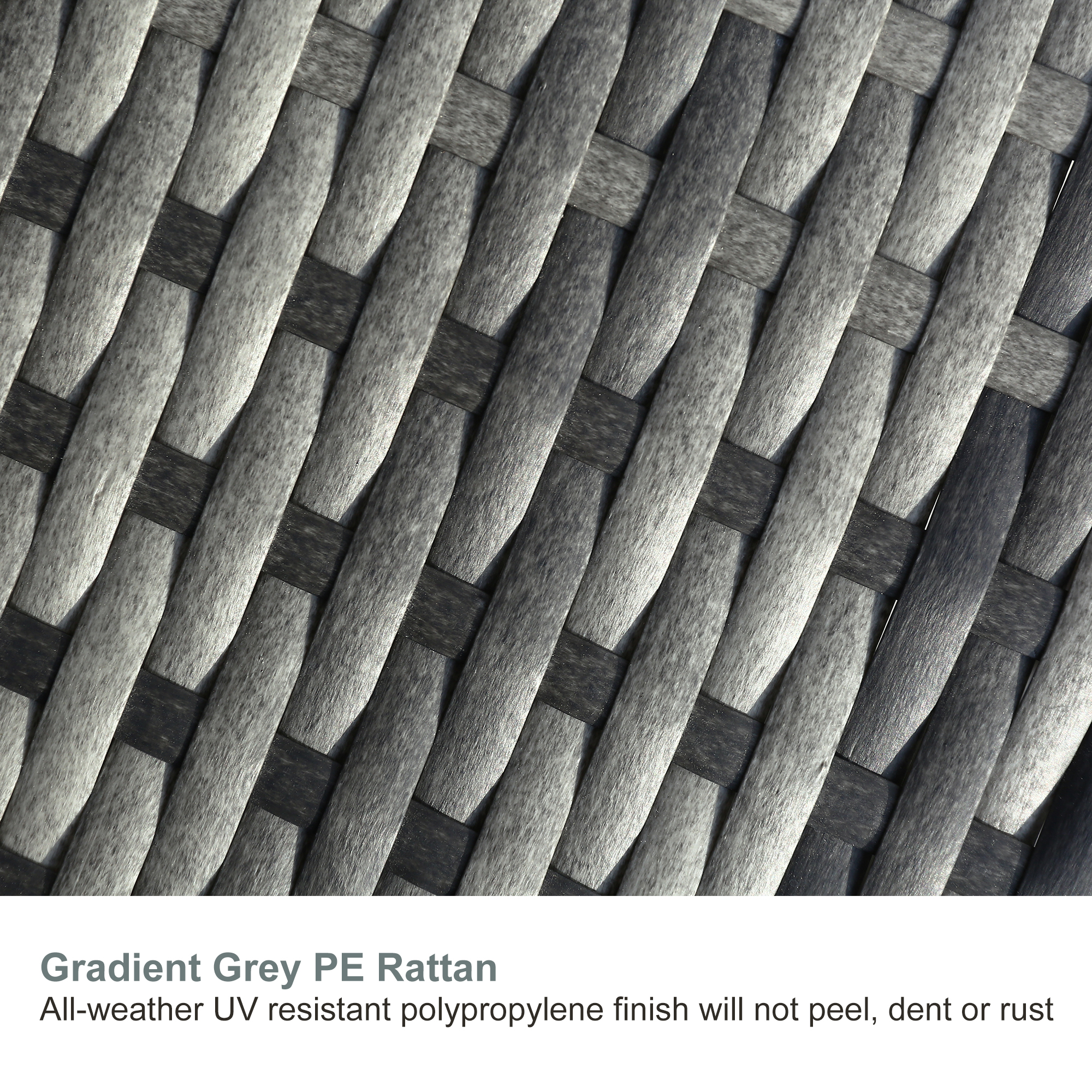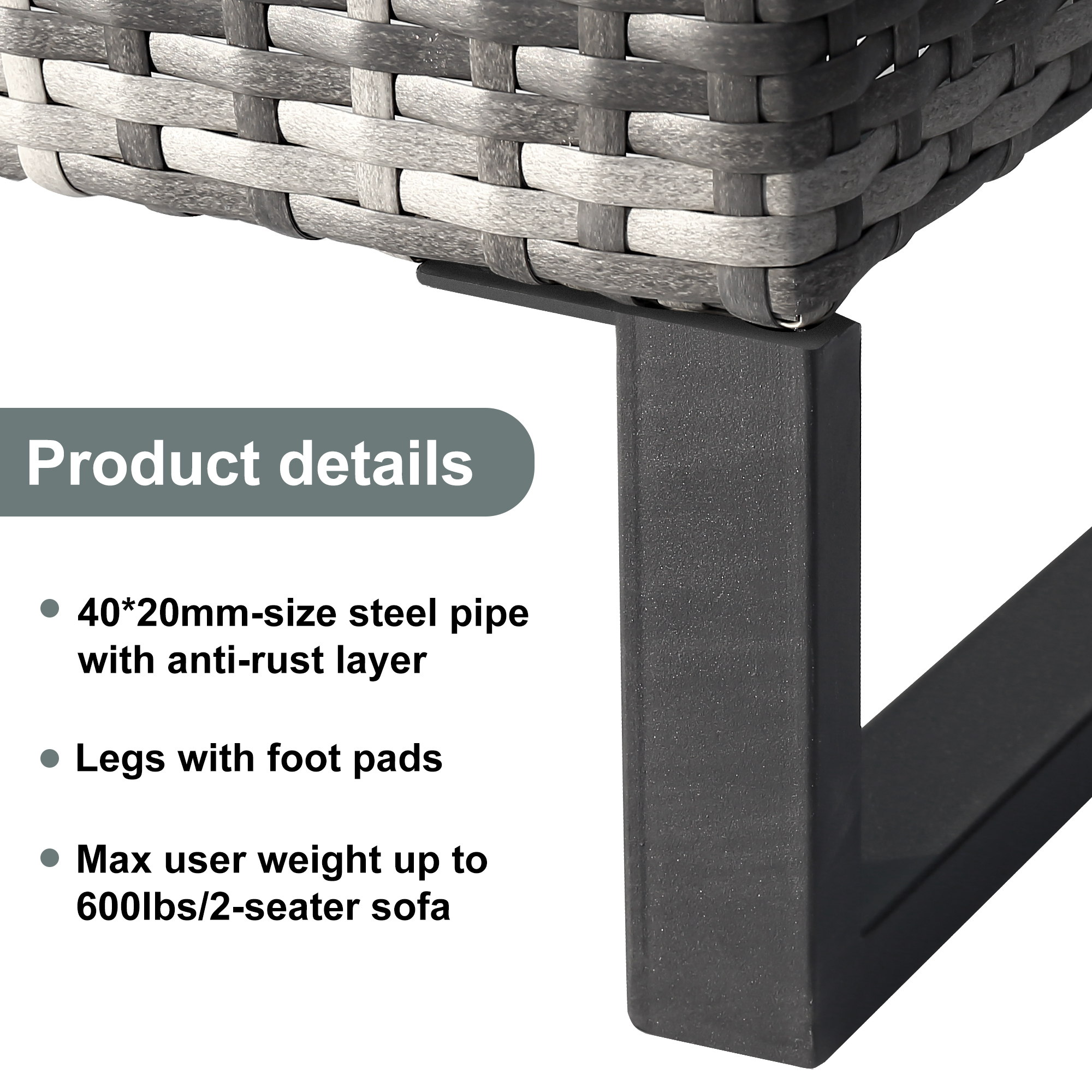 - Stylish color matching: The color matching of the sofa's gradient gray rattan, dark gray cushions, black feet, and wood-colored plastic panels is very fashionable, giving a sense of modernity and comfort. This color combination can be easily integrated into a variety of interior styles and brings a sophisticated atmosphere to outdoor areas.