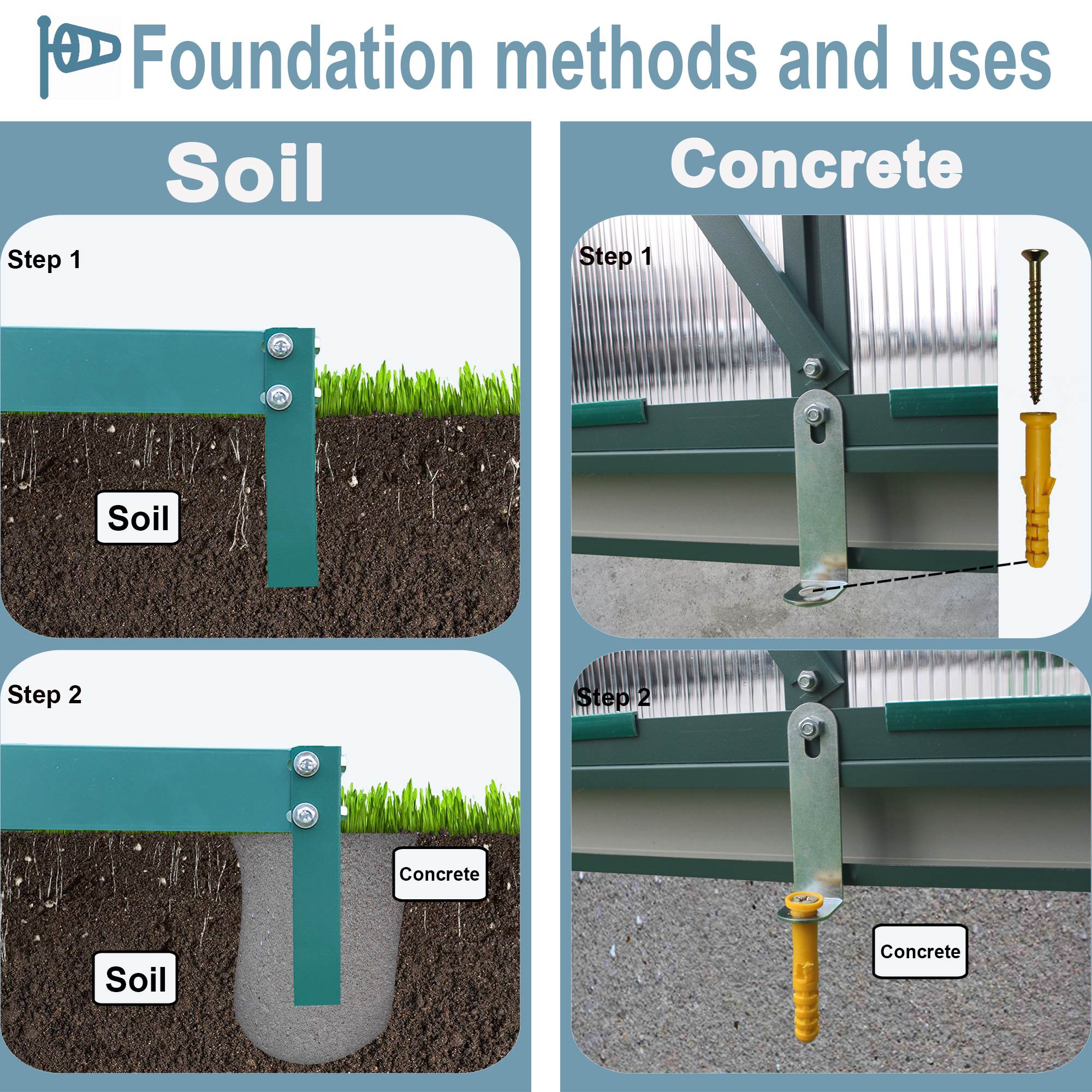 【STURDY & DURABLE WALK-IN GREENHOUSE】This green house kits to build for winter is made of 4mm twin-wall UV/wind resistant polycarbonate panels which can block up to 99.9% of UV rays and provide 90% light transmission and thickened premium aluminum frame,all this together with heavy-duty galvanized base help provide solid support for your entire plant nursery.