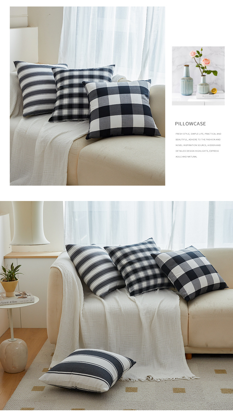 Product name: Black and white checkered pillowcase