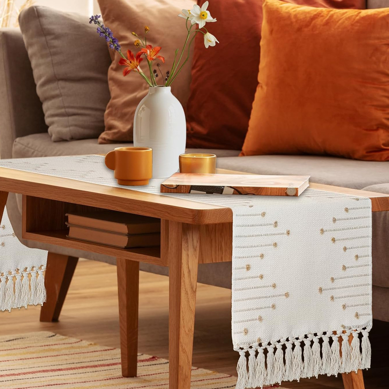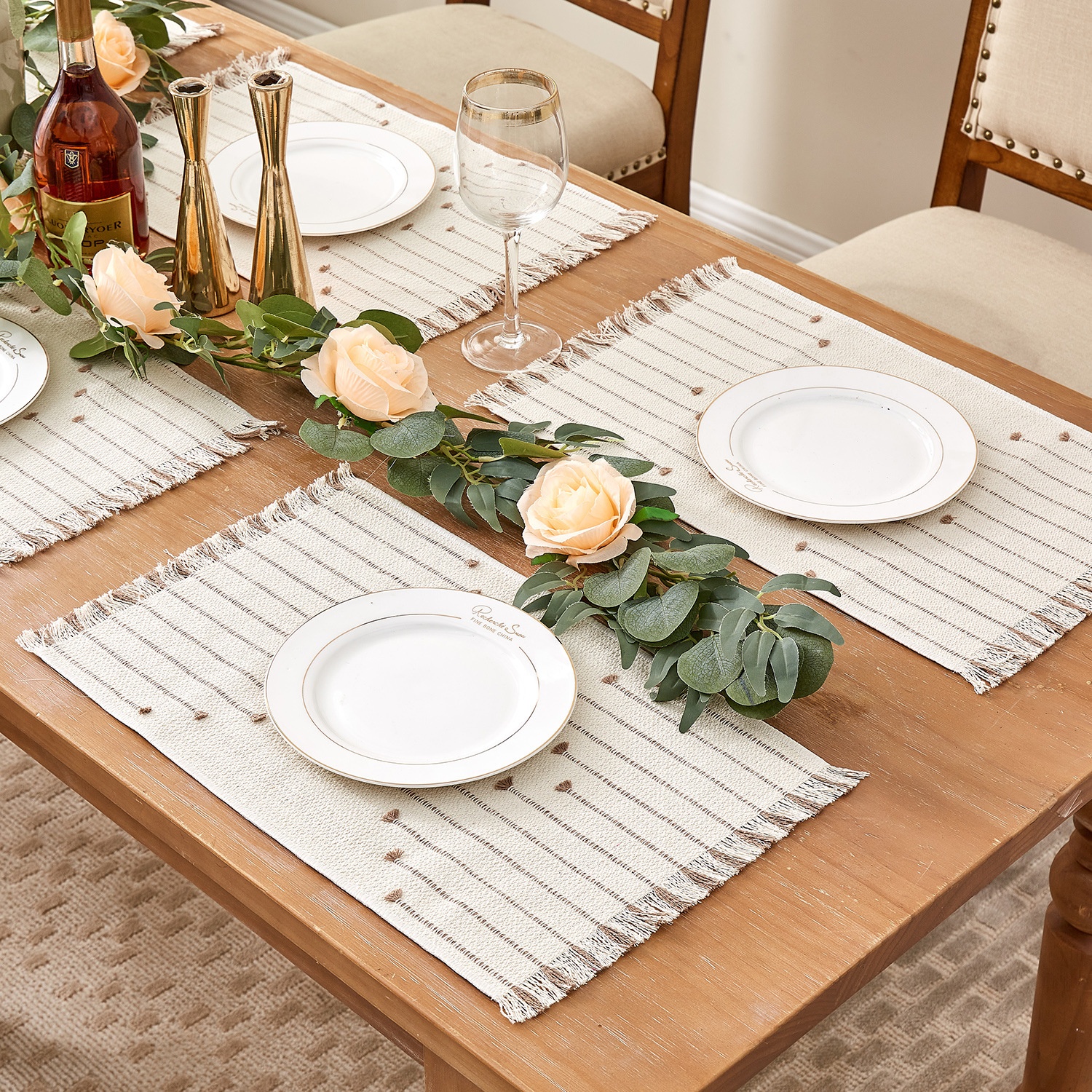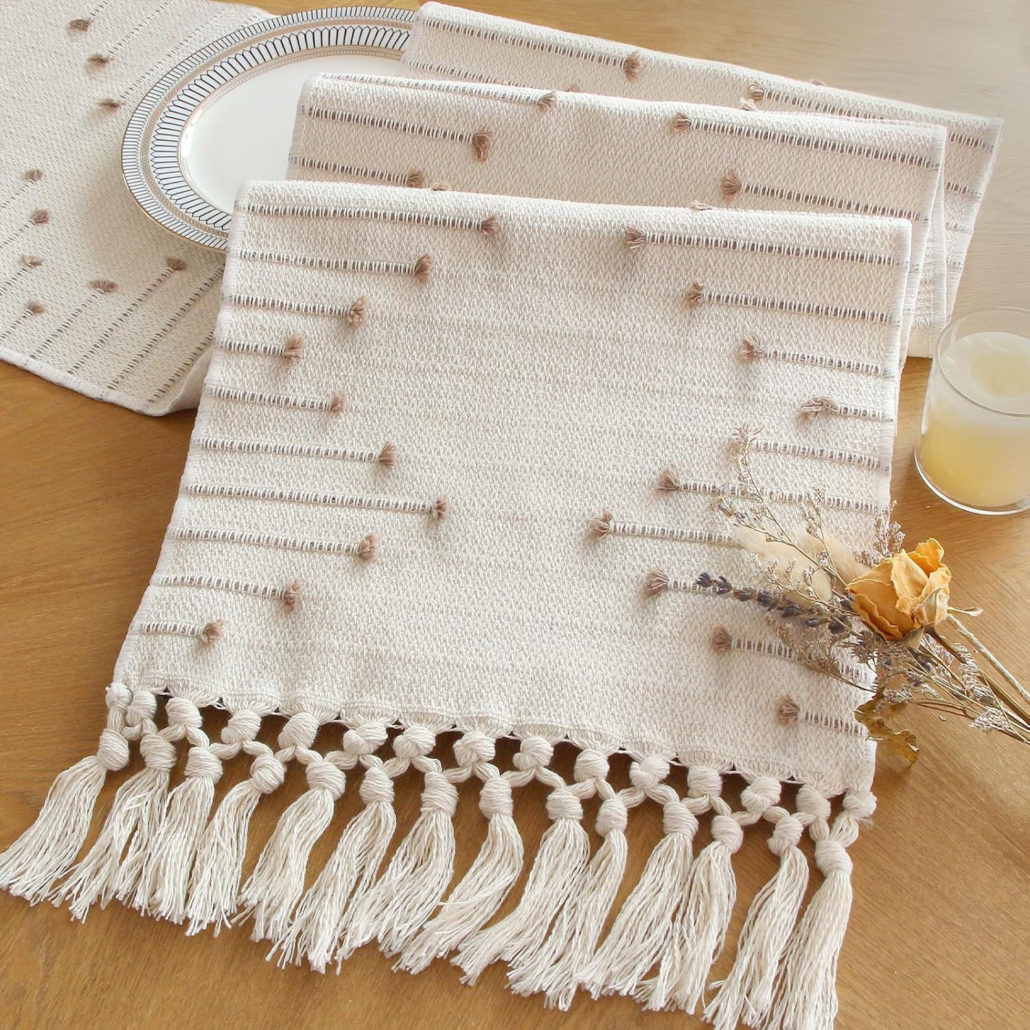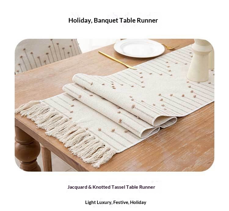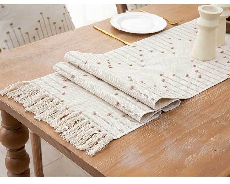 Colors: Table Runner Light Coffee — Single-row Tassels, Table Runner Light Coffee — Double-row Tassels, Placemat 30*48 cm — Tassel Edges