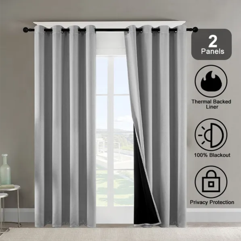 indoor blackout curtains are made of polyester fiber, which can block 95% of sunlight and ultraviolet rays. Thermal backed liner can bring blackout effect that the ordinary curtain can not be compared to. The darker the color of the fabric, the more light it can block. Our curtain panels used in the living room can not only isolate the heat in summer and the cold in winter, but also reduce external noise, thereby saving energy costs.