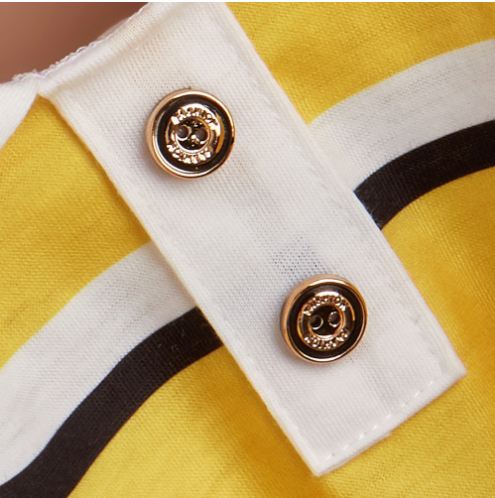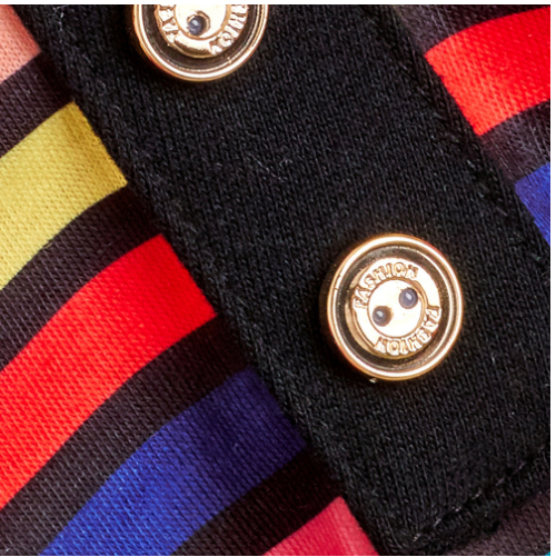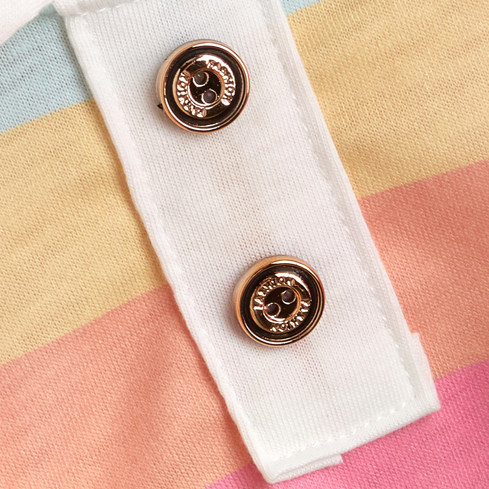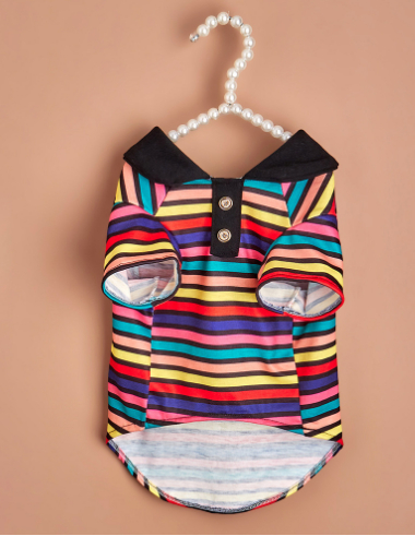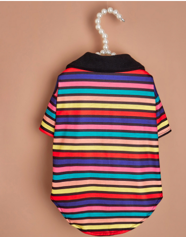 Color: colorful striped polo shirt