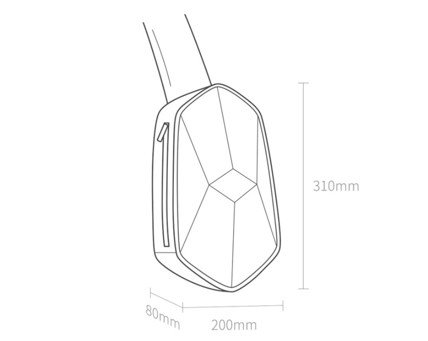 Product Name: Polyhedron Chest BagProduct size: 310 * 200 * 80mmMaterial: PE / PVC / Fabric