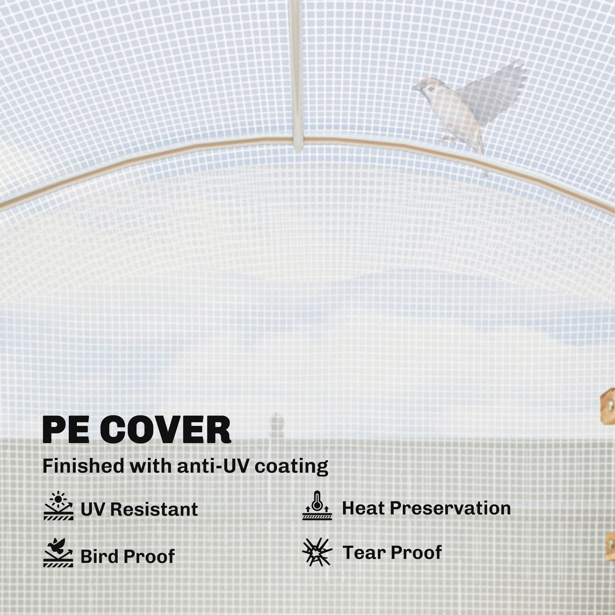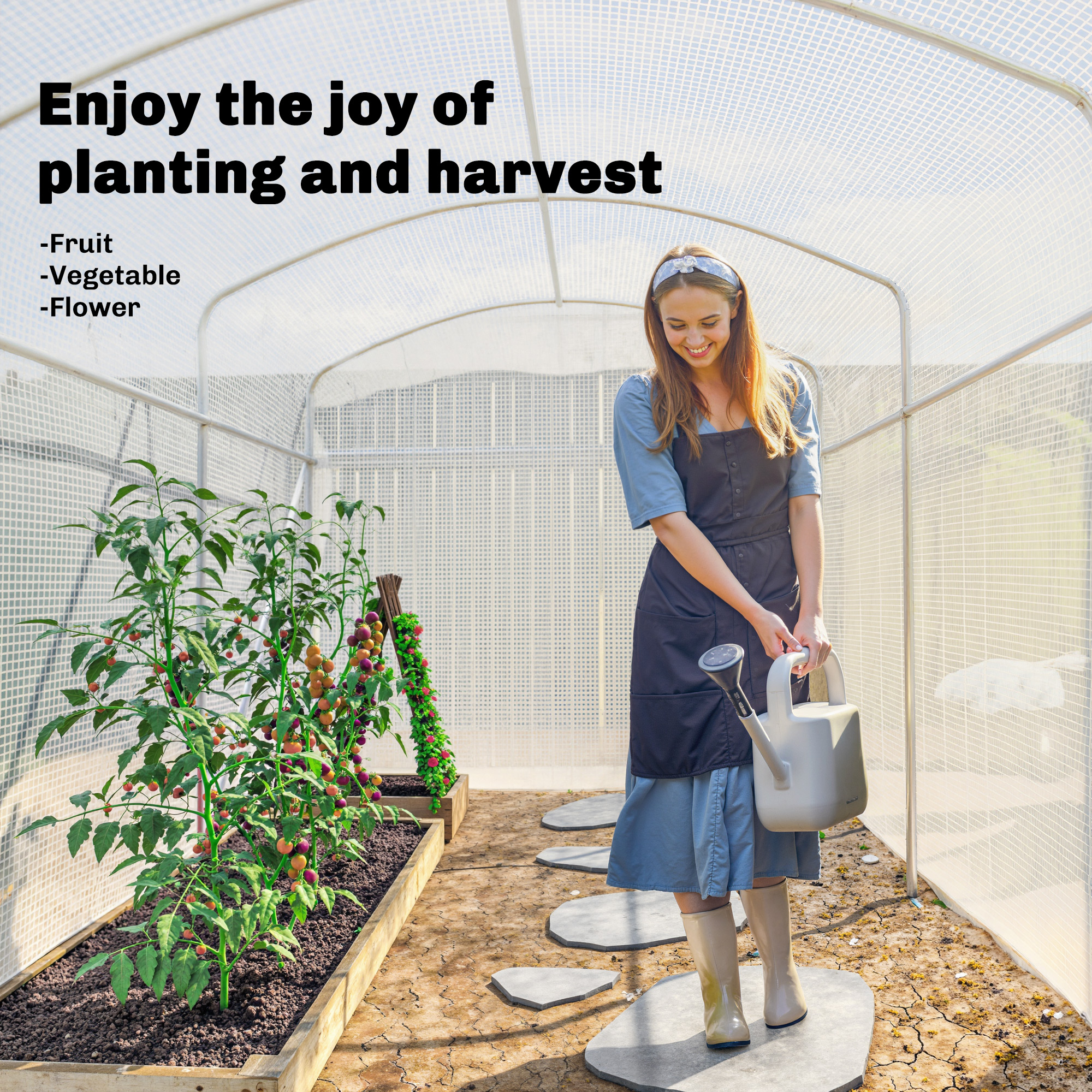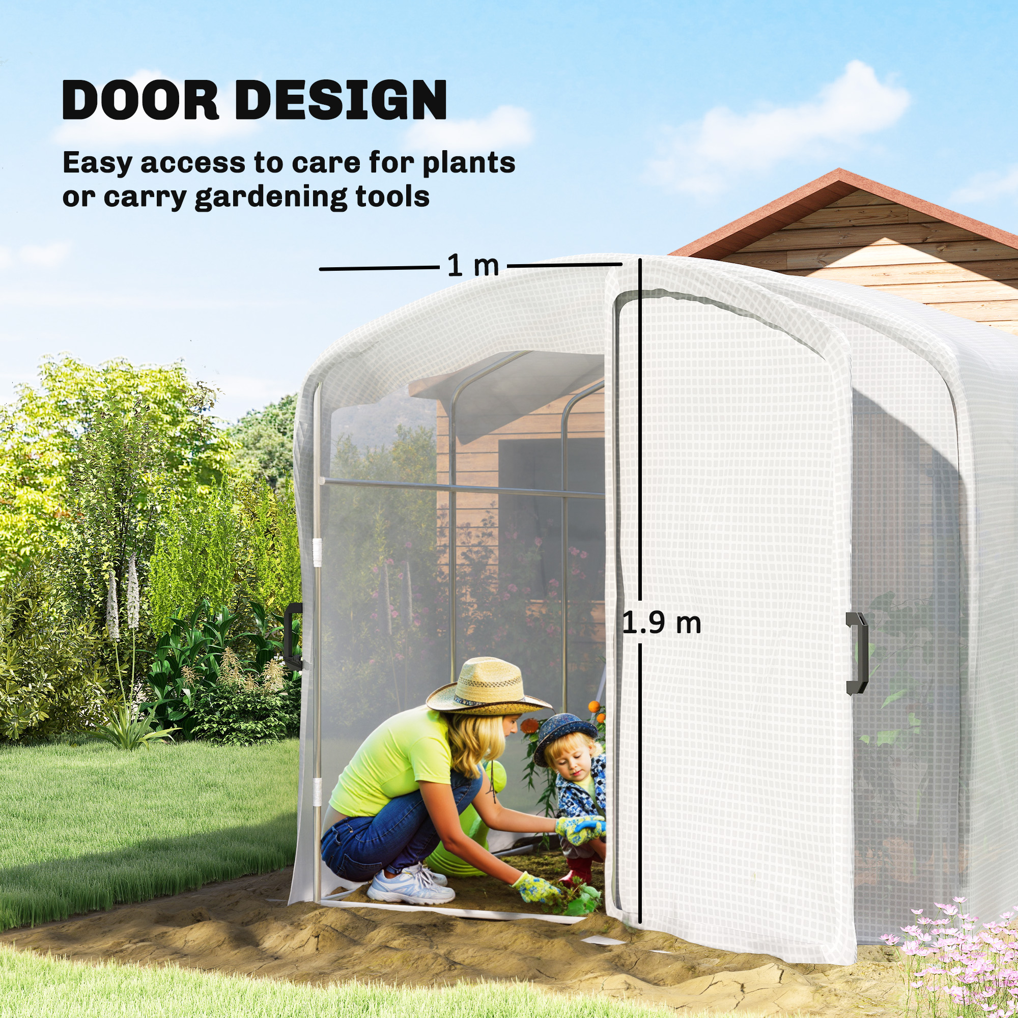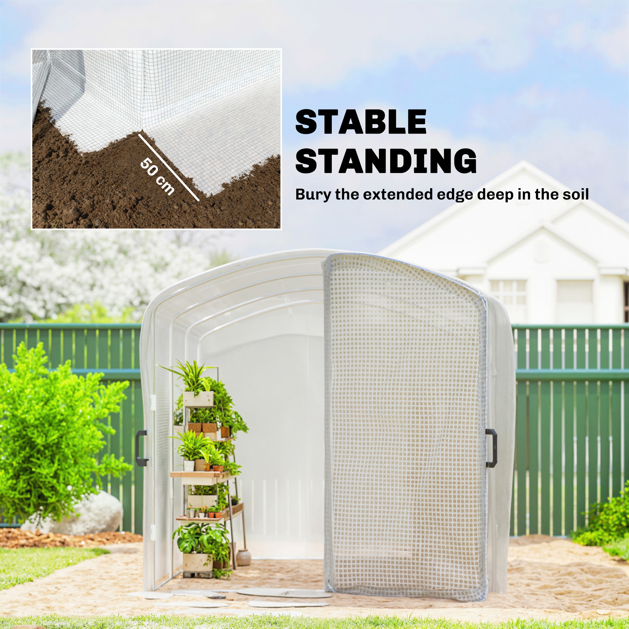 Year-round garden growth with this greenhouse. It's easy to access and bring air inside, thanks to the large hinged door. A galvanised steel frame for a strong core, with the plastic shell creating a safe growing atmosphere inside. Bury the 50cm edges into the soil for extra stability.