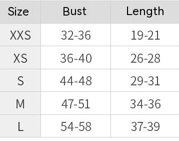 Size: XXS-(recommended 2-4kg),XS-(recommended 4-6kg),S-(recommended 6-8kg),M-(recommended 9-11kg),L-(recommended 11-14 Jin)