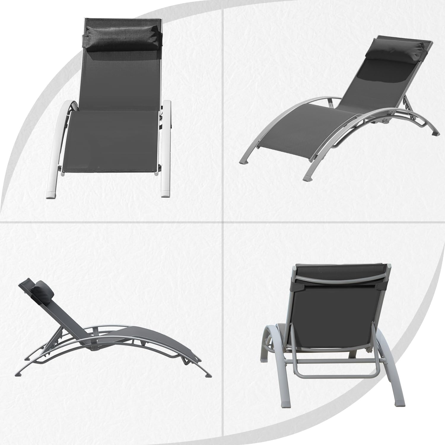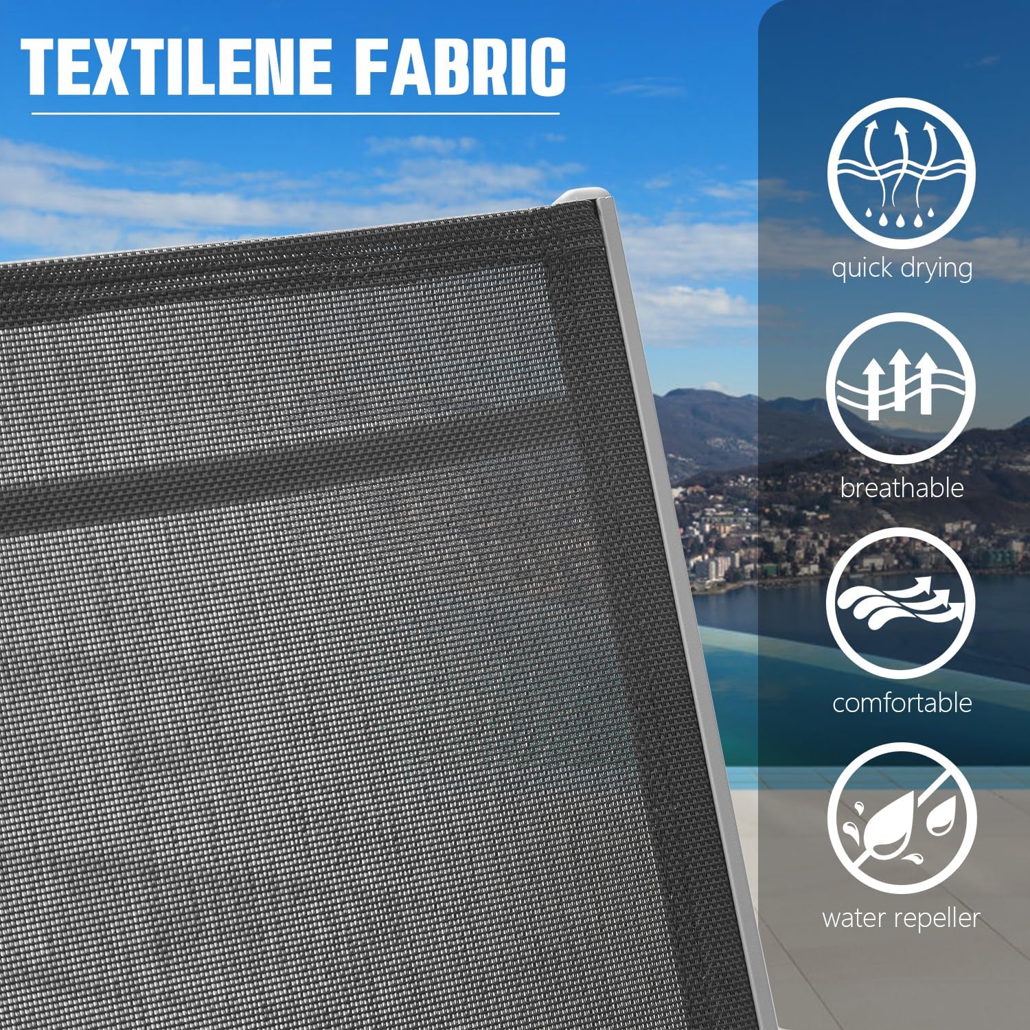• High-quality Textilene Fabric- This chaise lounge set is made of high-quality Textilene fabric, which is quick-drying, durable, lightweight, and resistant to the elements, let your skin feel comfort and breathable.