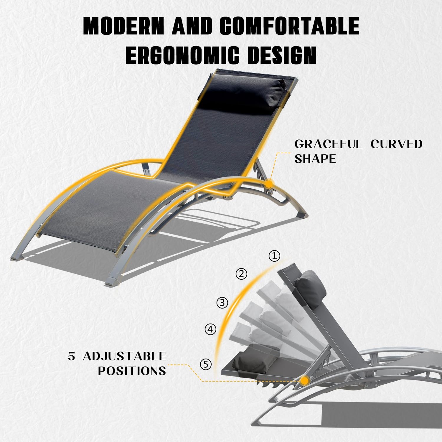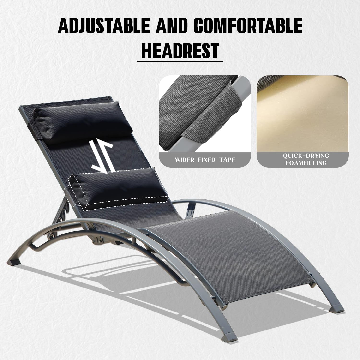 • Adjustble & Detachable Pillow- The detachable pillow of This chaise lounge will make sure your head and neck are supported. And you can adjust the headrest to any position according to your needs.